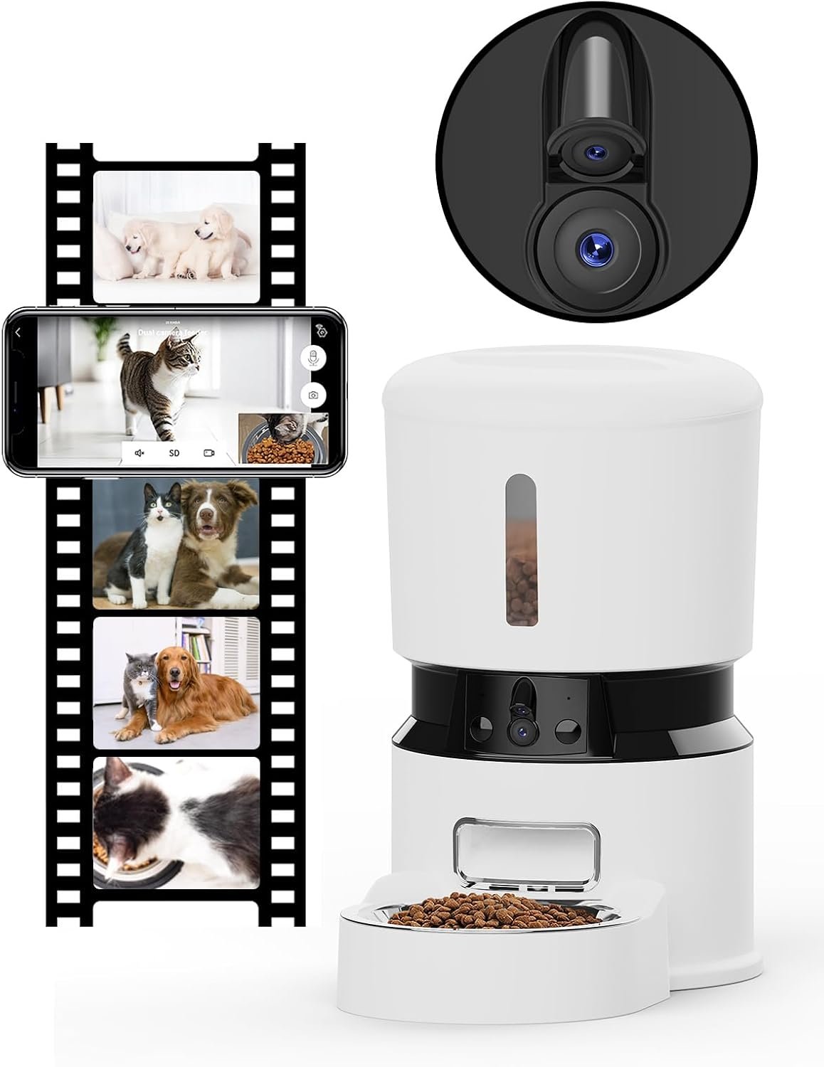 Automatische kattenvoerder, 2 camera 5G WiFi Pet Feeder voor Cat & Dog met versheidsbehoud, 1080p HD Food Dispenser met nachtzicht, getimede Smart App Cat Feeder met 2-weg audio, huisdiermonitor, voogd