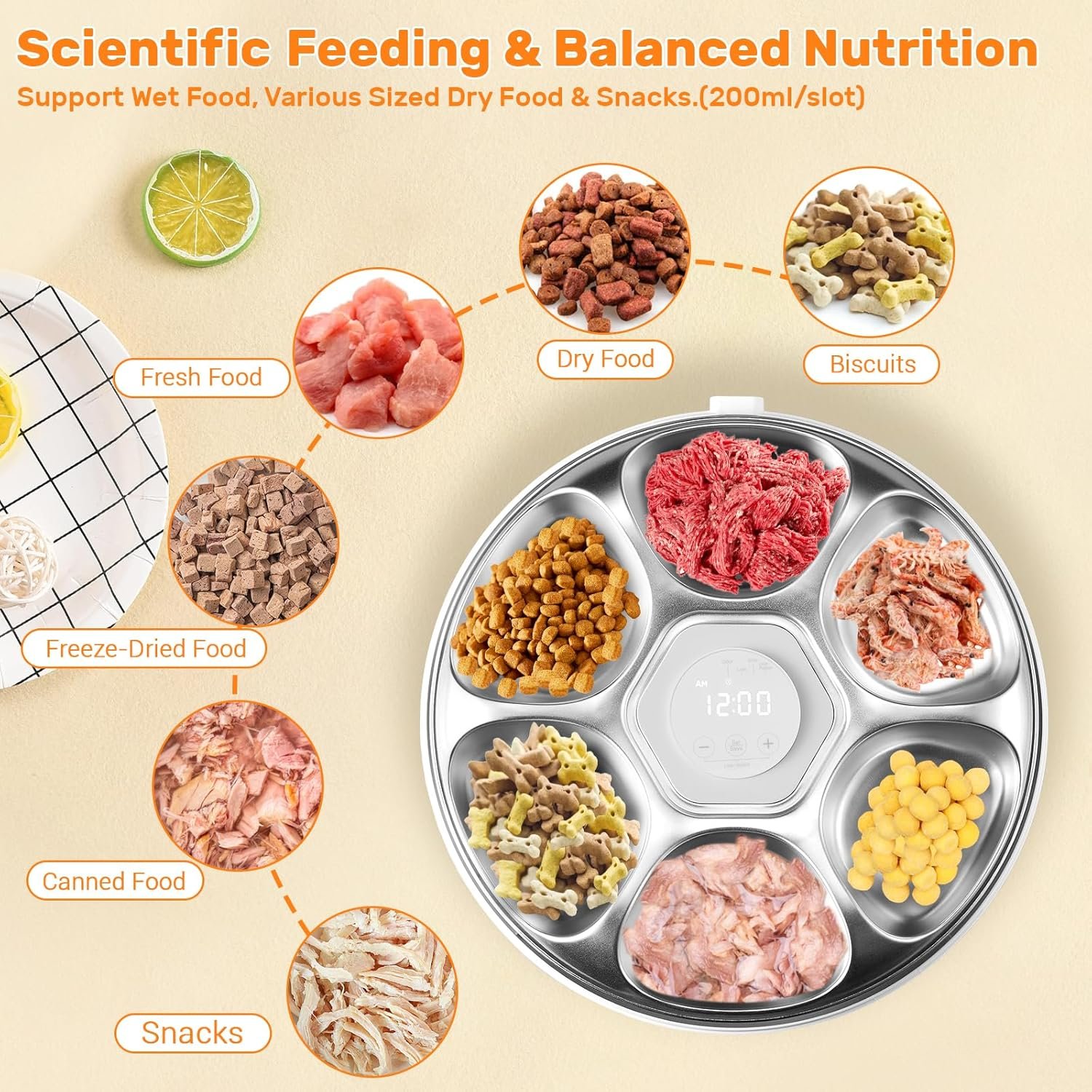 ????【 All-Round Pet Safety Protection】 Gamkii Automatische feeder aanpassen Voedsel Grade 304 Roestvrijstalen voedsellade, die prioriteit geeft aan de gezondheid van uw huisdier. Neem opgenomen met schermvergrendelingsbescherming en een pootverzorgingsontwerp om potentiële verwondingen te voorkomen.