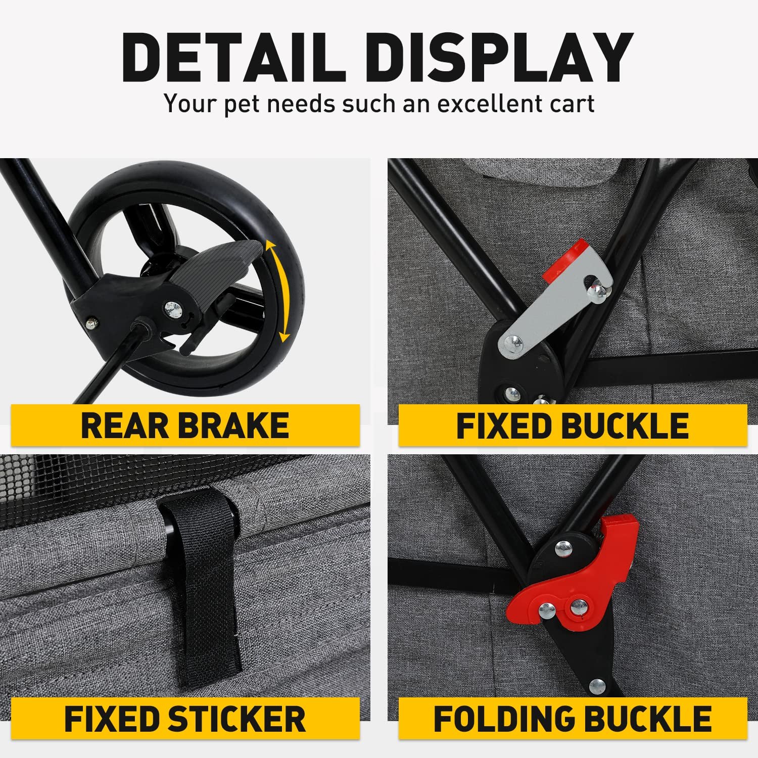 ????【 Grote deurgordijn】 De dog -kinderwagen heeft veel ruimte met grote deurgordijnontwerp helpt om indien nodig een andere maat te openen. Het waterdichte mesh -venster helpt om uw huisdieren van slechte externe omstandigheden te voorkomen, vooral gemakkelijk op te ruimen. De luifel van hondenstroller heeft een vaste vouwgesp en sticker helpen om te voorkomen dat huisdieren eruit springen. Onze PET-kinderwagen heeft 4 gladde wielen, wat handiger is met 360 ° rollende wielen, zodat u goed kunt controleren tijdens het bewegen.