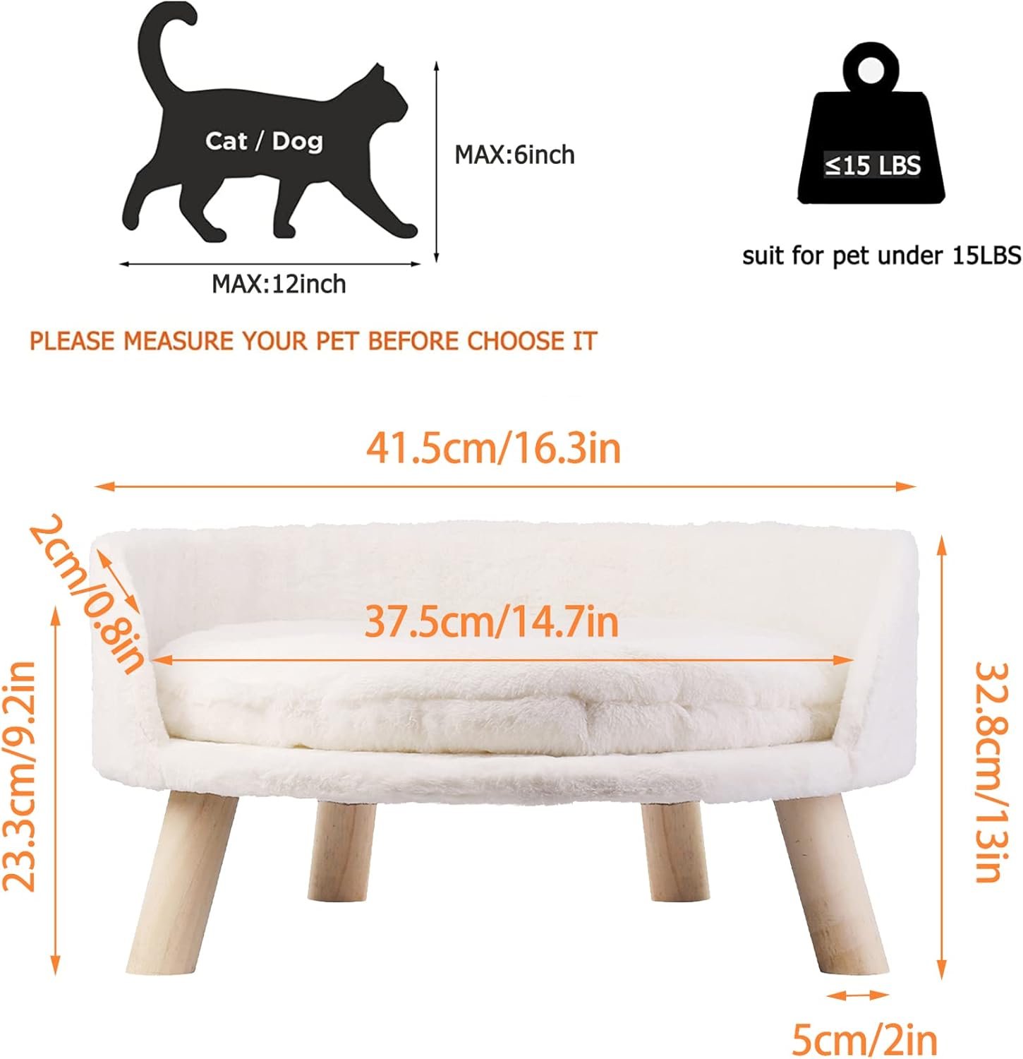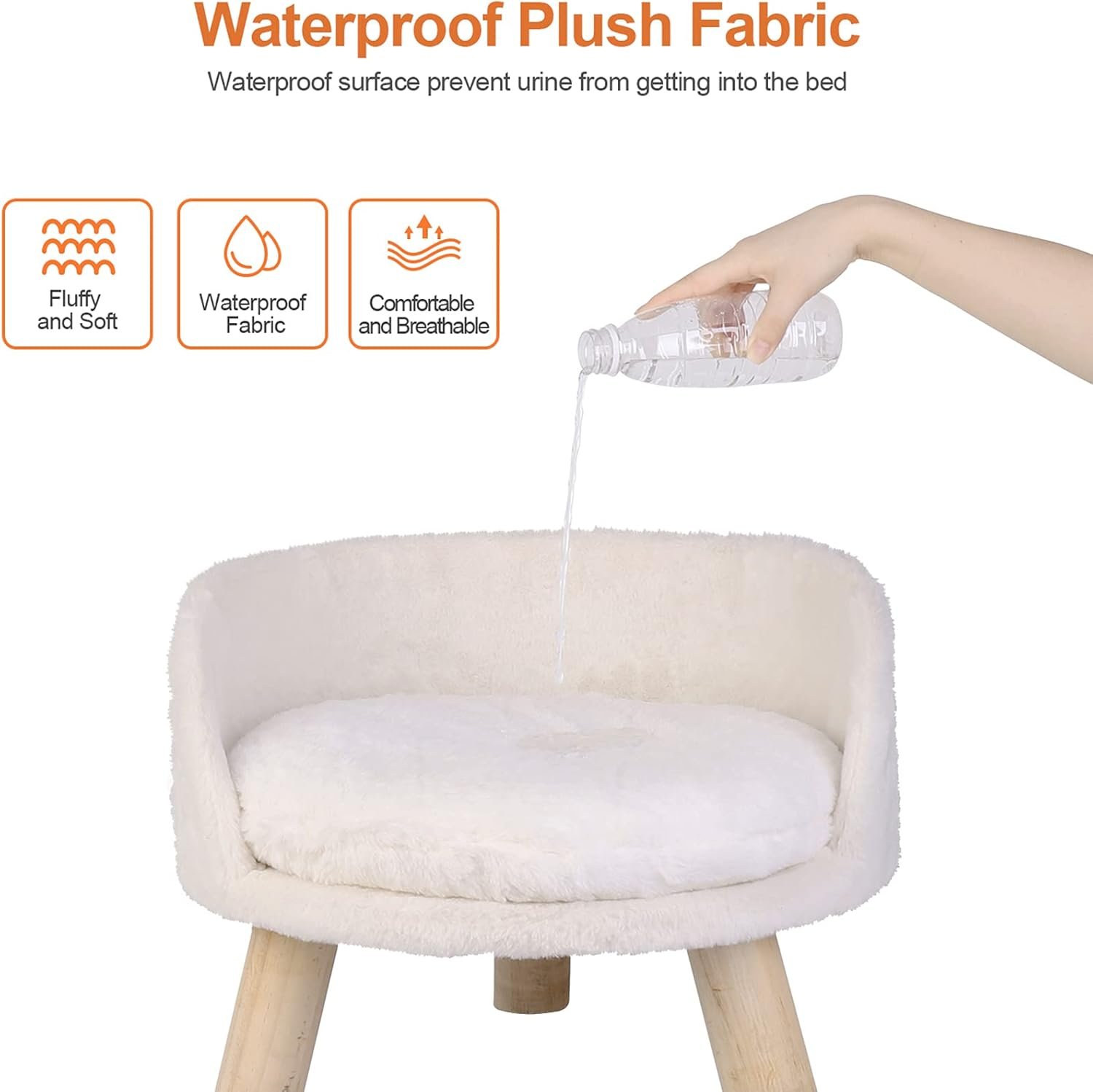 Bingopaw verhoogde huisdierbed, Aldse Pet Stool Bed met gezellige pad waterdichte, huisdierstoel met stevige houten benen voor kleine hondenkitten