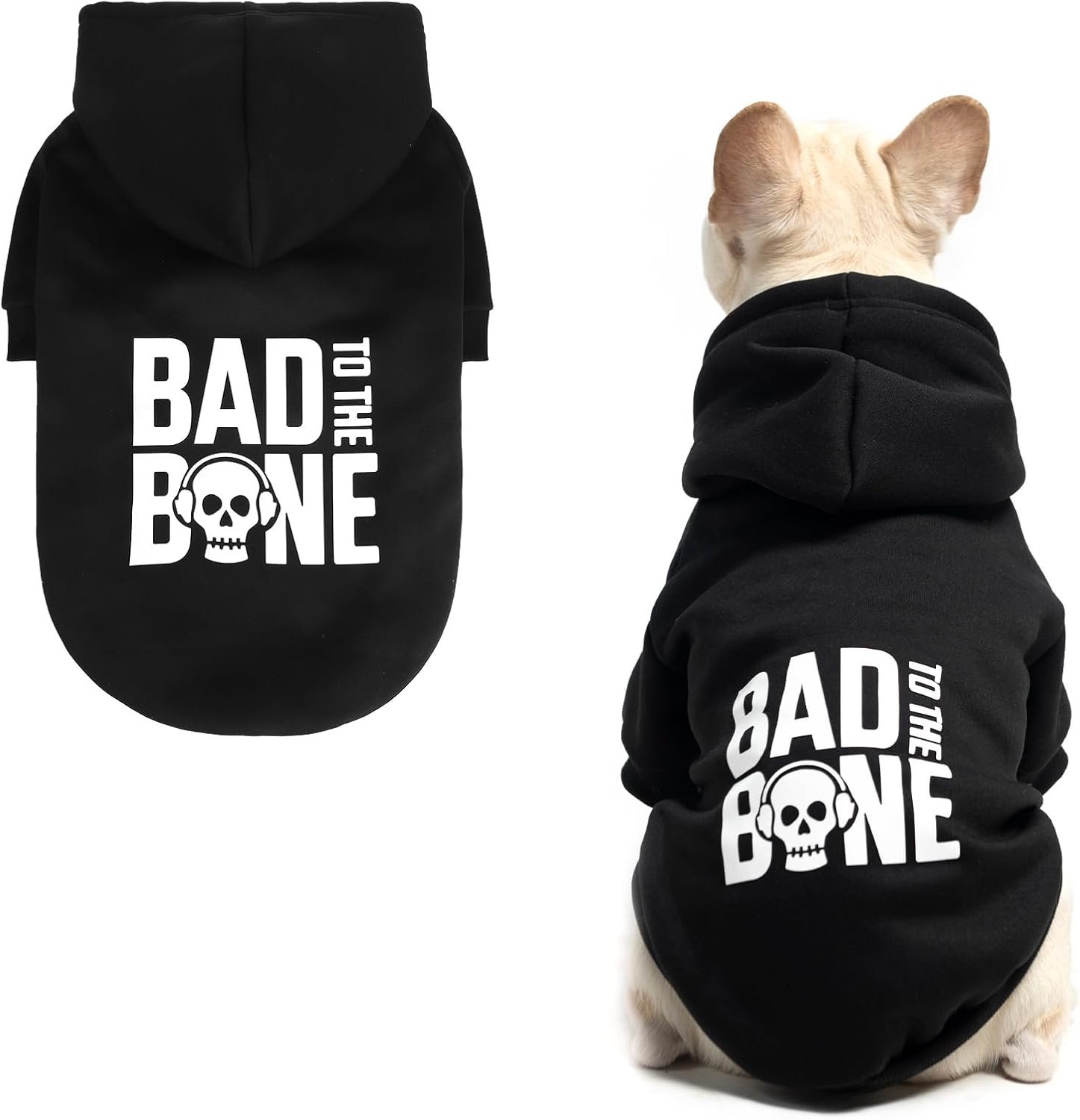 Ontketen de houding: de stijl van je pup zal slecht worden met de ‘Bad to the Bone’ hoodie! Stoer, gewaagd en altijd op punt, deze hondenhoodie laat je hond opvallen, de regels overtreden en persoonlijkheid uitstralen. Perfect voor dagelijkse slijtage, buitenactiviteiten, huisdierenfotografie en feesten, uw honden warm en gezellig houden terwijl u plezier toevoegt