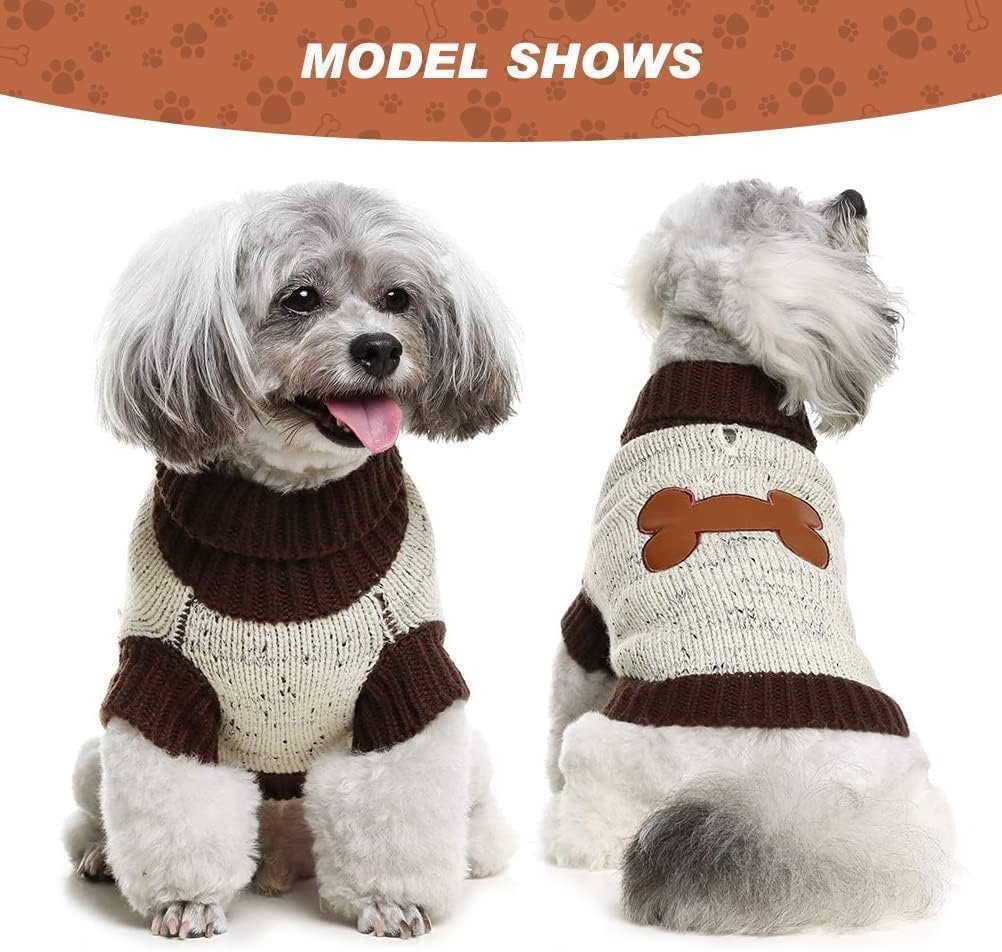 Bingpet Turtle Neck Gebreide hondentrui, hondentruien voor kleine middelgrote grote honden met bruin botpatroon, puppy winter warme doek voor koud weer thermische slijtage