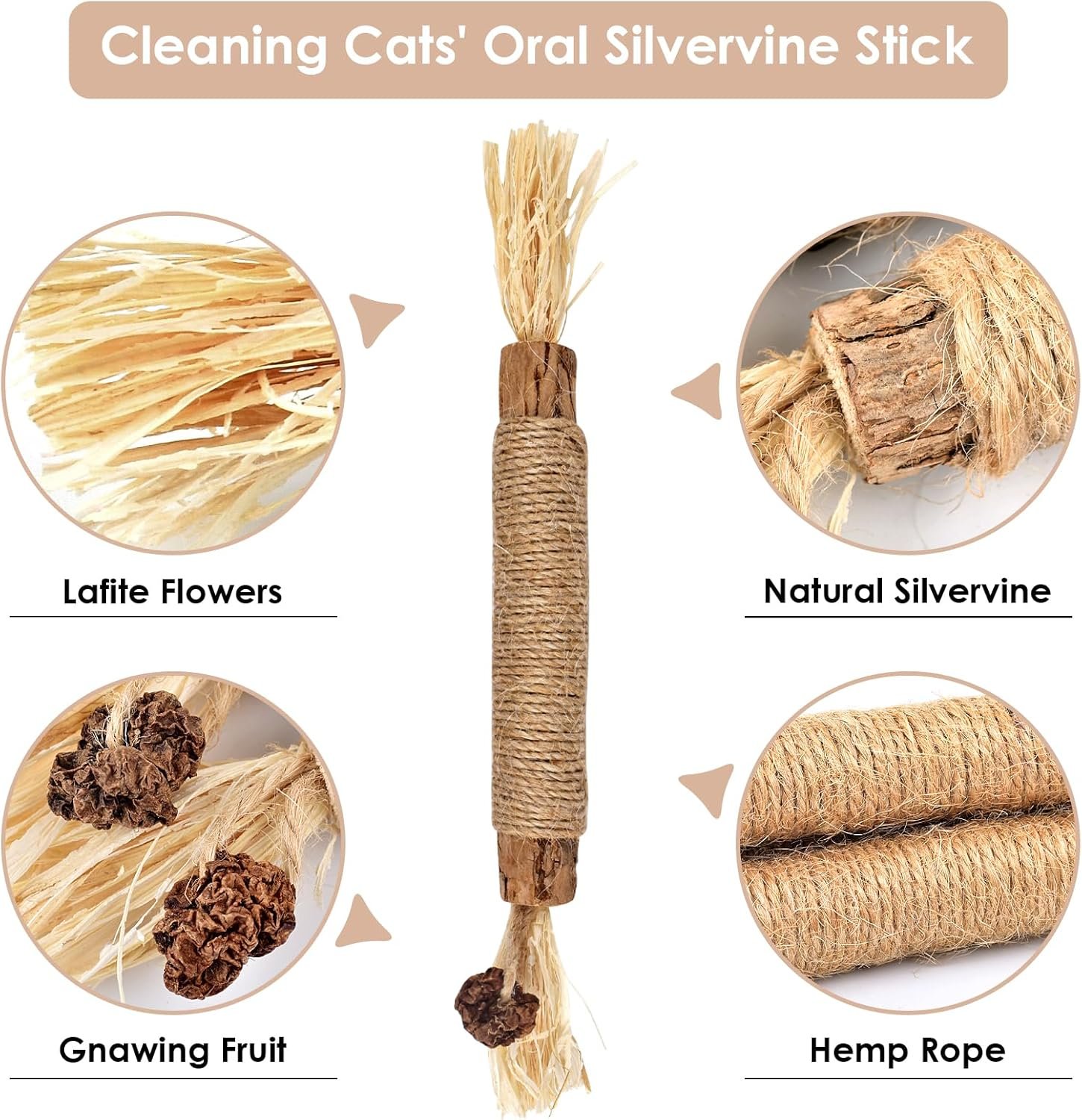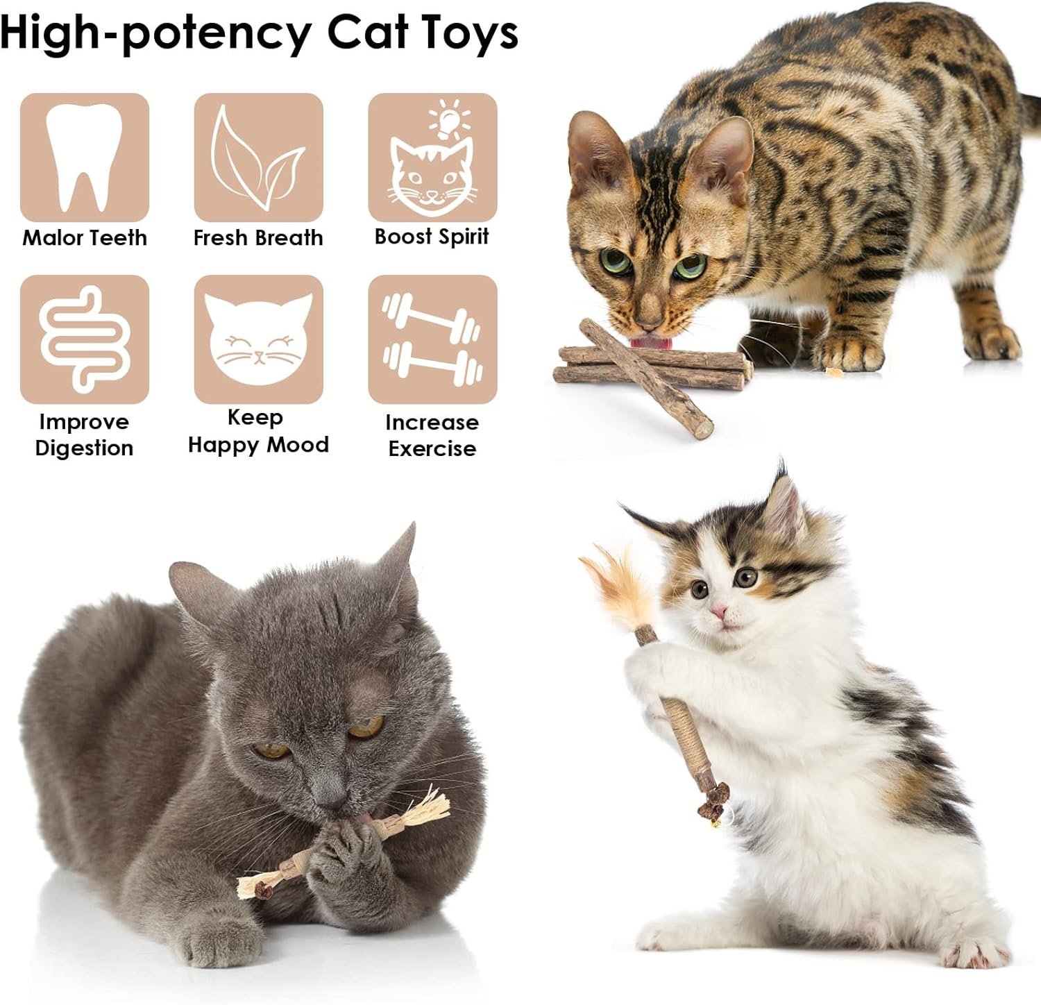 Bissap 10 PCS Silvervine Chew Sticks voor katten, Catnip Chew Sticks Cat Toys voor binnenkat kattentanden slijpen interactief veerspeelgoed voor agressieve kauwers