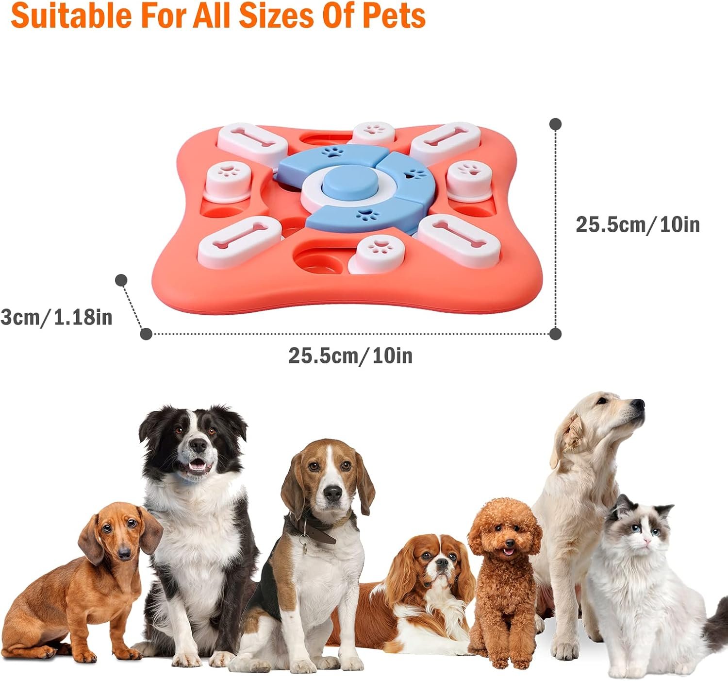 (Bulit-in Squeaker om de interactiviteit te vergroten) De stimulerende hondenpuzzel is uitgerust met een pieper onder de middelste knop waarmee u op de knop kunt drukken en uw puppy kunt bellen voor het voeren van een puzzelspel. Je zou genieten van de tijd van puzzelspel met je huisdieren, die de relaties met je huisdieren aanzienlijk zullen verbeteren en plezier zullen worden tijdens interactieve hondenspellen.