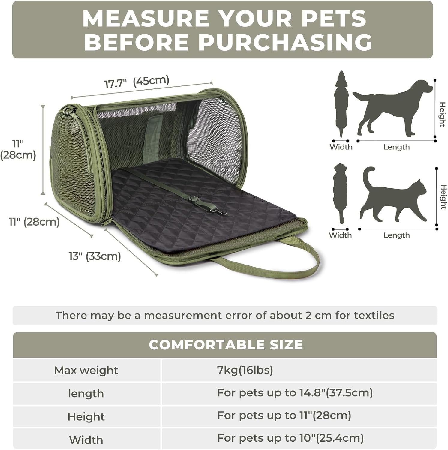 Airline goedgekeurde drager : Burgeonnest hondendrager voor kleine hond 17.7x11x11 inch tot 16 pond kan worden geplaatst onder de stoel in de cabine, het is voornamelijk ontworpen voor â‘ skywest luchtvaartmaatschappijen: 18.5×13.5×9.5 “â‘¡Delta Airlines: 18x11x11” â‘¢united airlines: 18x11x1111 “â‘£American Airlines: 18x11x11”. We raden u aan deze koerier te kopen wanneer u vliegt met de bovengenoemde luchtvaartmaatschappijen.