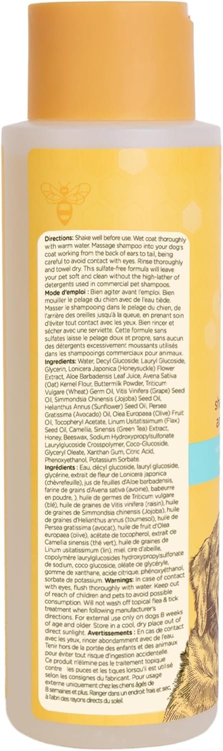 Verlicht honden jeuk en reinigt – Deze hondenshampoo voor allergieën en jeuk heeft van nature een honing afgeleid om te kalmeren terwijl je hondenjas schoon en zacht houdt – een must -have in je honden badbenodigdheden