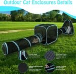 Bwogue Outdoor Cat -behuizingen voor katten binnenshuis, 4 in 1 buitenkattentent met tunnel draagbare pop -up visuele mesh kat buiten playhouse voor katten puppy kleine dieren, totale lengte 9,45 ft