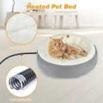Bwogue verwarmd kattenbed voor binnenkatten, 19 ” donut afneembaar verwarmde huisdier bed thermo-kitty verwarmingsbed, elektrische verwarmende kattenbedverwarming met timer, wasbaar huisdierenverwarmingsbed