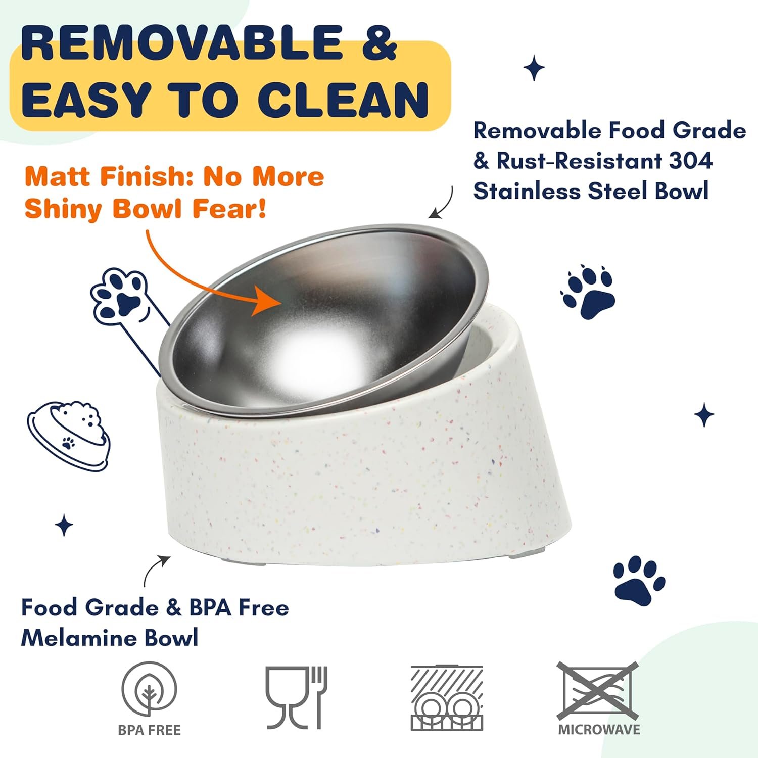Deze kom met sprenkelpatroon voegt vreugde toe aan de routine van je huisdier. Het gekantelde ontwerp houdt voedsel waar het thuishoort, terwijl de niet-slipbasis minder morsen betekent. Leuk voor uw huisdier, gemakkelijk voor u-een win-win!