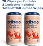 Caboo -boomvrije huisdierdoekjes voor honden en katten, natuurlijke, deodoriserende, hypoallergene reinigingsdoekjes voor ogen, oren, poten en gezicht (ongeparfumeerd, 2 bussen, totaal van 140 jumbo doekje)
