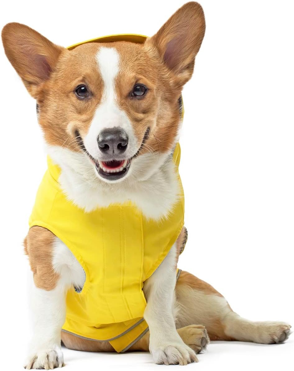 Waterbestendige hondenjas – je doet een jas aan als het regent of sneeuwt, toch? Dus waarom zou je er geen op je pup zetten! Onze waterdichte honden regenjas beschermt je hond tegen zware regenval en schuift het vocht gemakkelijk van het lichaam van je hond! Het materiaal van hoge kwaliteit droogt sneller en gemakkelijker dan de meeste hondenjassen en voorkomt dat uw hond koud regenwater op zijn vacht krijgt! Houd uw hond schoon en veilig met onze regenjas voor honden!