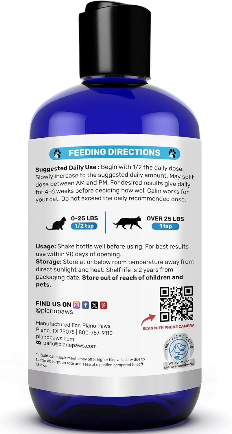 Cat Angst Relief 90 Day Supply – Snellere absorptie dan CAT -kalmerende traktaties – Cat kalmerende producten voor alle leeftijden – Vloeibare kalmerende kattentraktaties voor slaaphulp – 8 ingrediëntenmengsel + kat melatonine