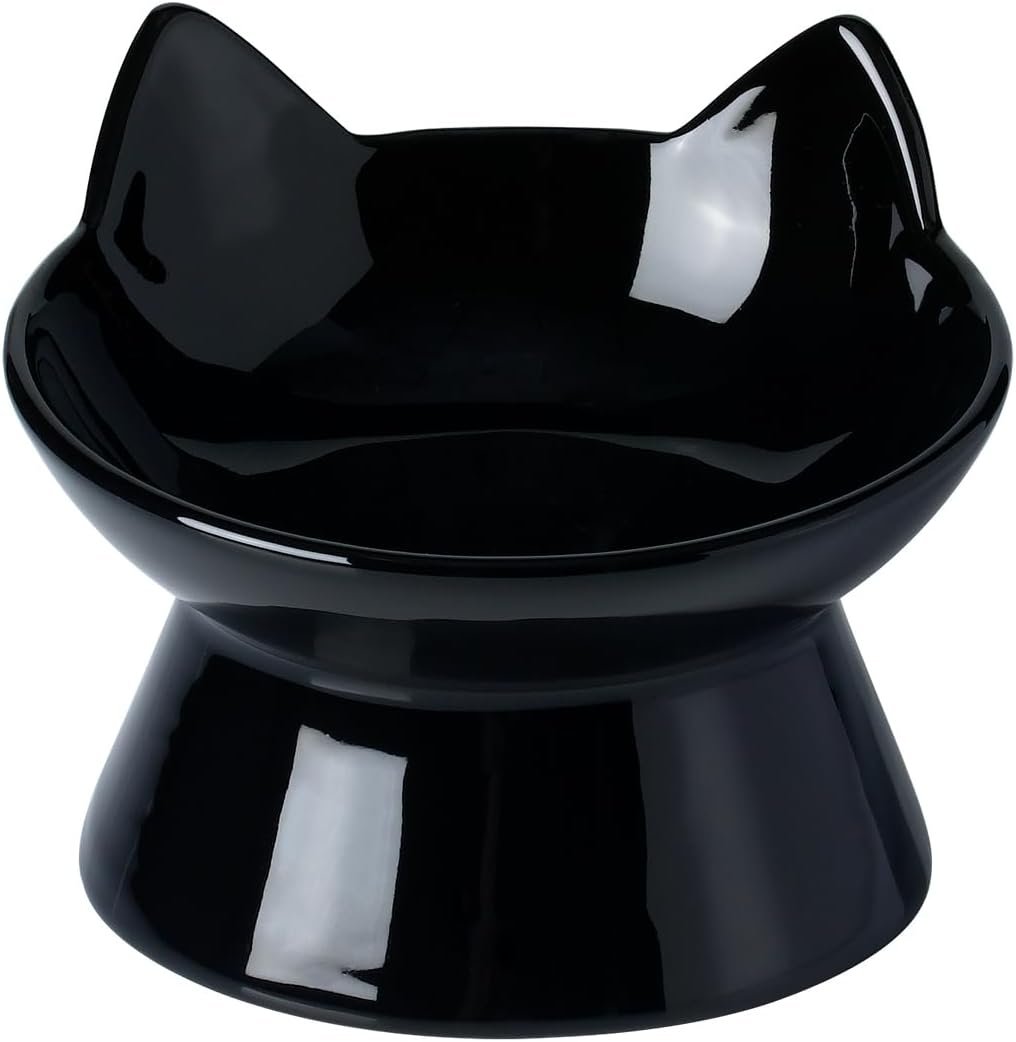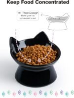 Cat Food Bowl, 5 oz keramisch verhoogde kittenwaterkom, 15 ° gekanteld verhoogde huisdiervoeder, anti -braken en snorrenvriendelijke gerechten voor vet, kat, kitten, kleine hond