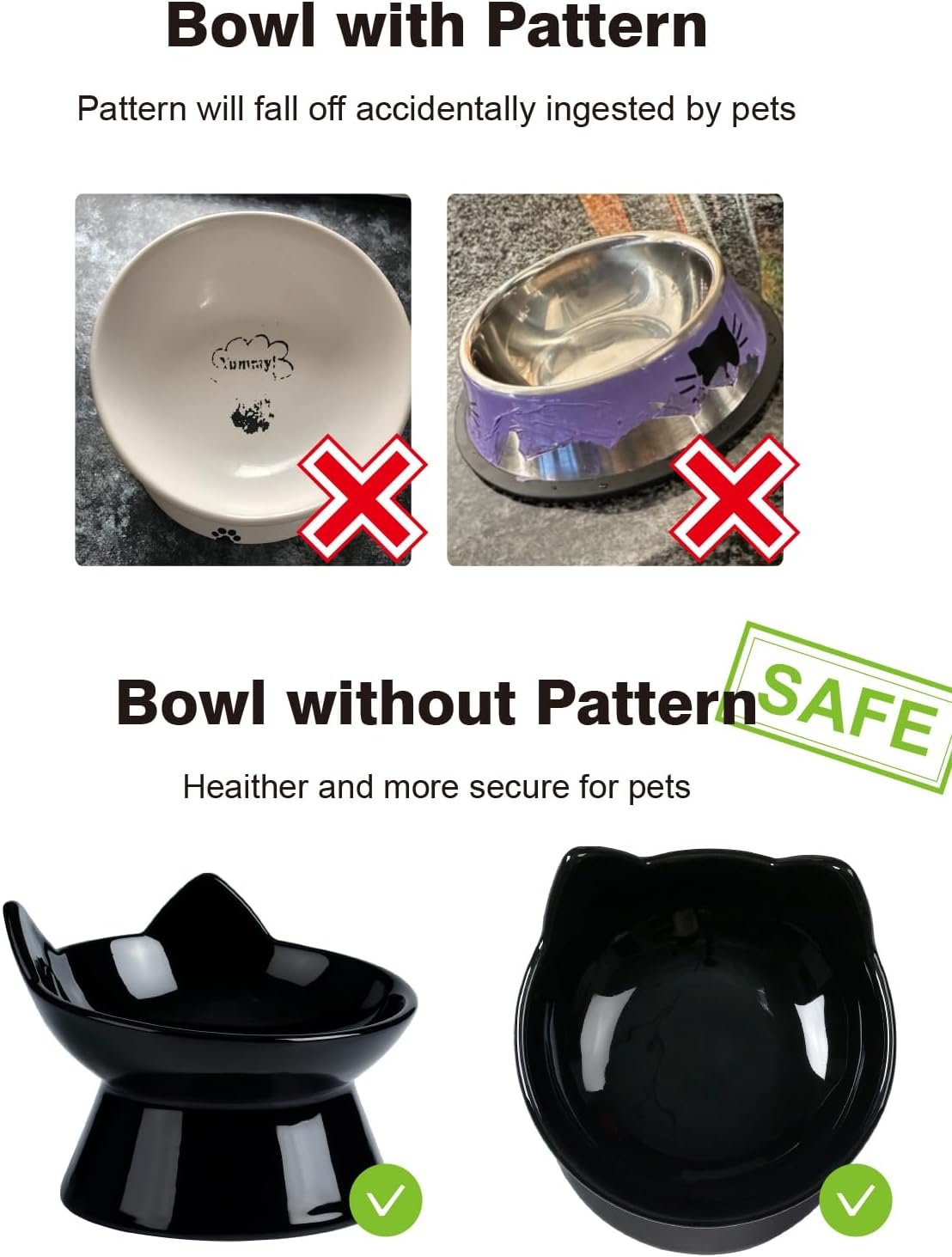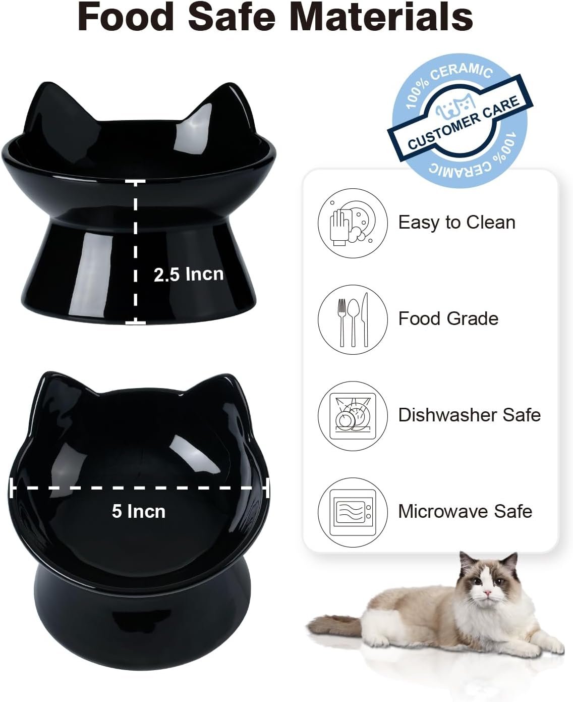 15 ° Tilt Angel Design: Dankzij de gekantelde kattenvoedingskom kan voedsel zich opstapelen en naar het midden vallen, waardoor voedsel wordt voorkomen dat voedsel uit de kom wordt geduwd en snrudersvriendelijk is, waardoor uw kat zich comfortabel kan voelen tijdens het eten.