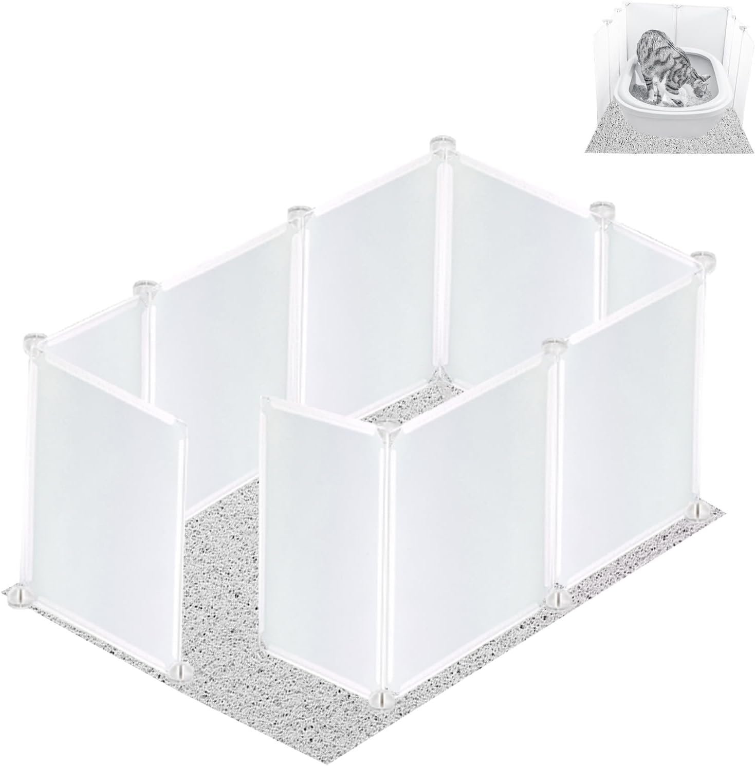 Extra grote doe -het -zelf -behuizing Splash Guard voor allerlei kattenbakvak. Meet vóór bestelling uw kattenbak en plaatsgebied om ervoor te zorgen dat de grootte van de behuizing geschikt is. We hebben kabelbladen en waterdichte tape verstrekt. Indien nodig kunt u de schotjes steviger binden en de opening tussen de schotten dekken. Kat de kuilmat helpt zwerfvuil van de doos te vangen en uw vloer te beschermen
