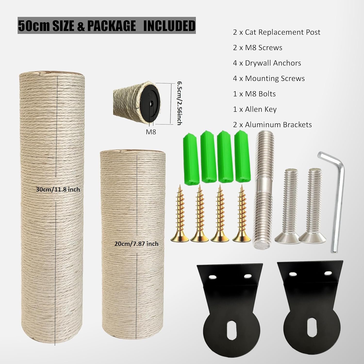 【Schroefcompatibiliteit】】: Onze kattenkrabpalen kunnen worden gebruikt voor kattenklimrekken Cat klimmende nestkattenboom nadat de vulstangonderdelen geschikt zijn voor M8 -schroeven, dus controleer of uw kattenboom of kattenbasis schroeven met een diameter van 8 mm (m8) bij aankoop.