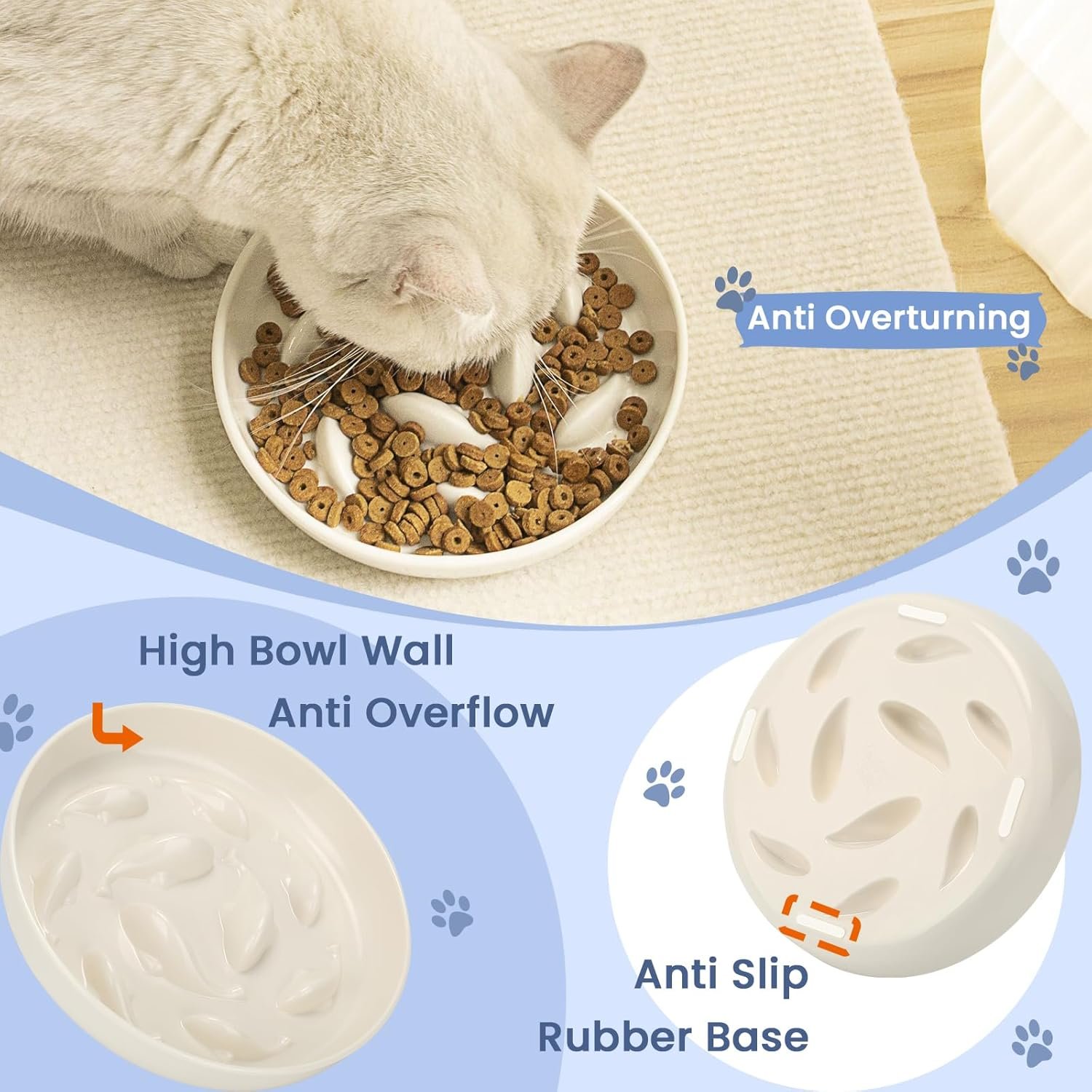 3: (bevordert gezond eten): het is ontworpen om gezonde eetgewoonten te bevorderen door het eetpospitaal van uw kat te vertragen en het risico op stikken, braken en andere spijsverteringsproblemen te verminderen.