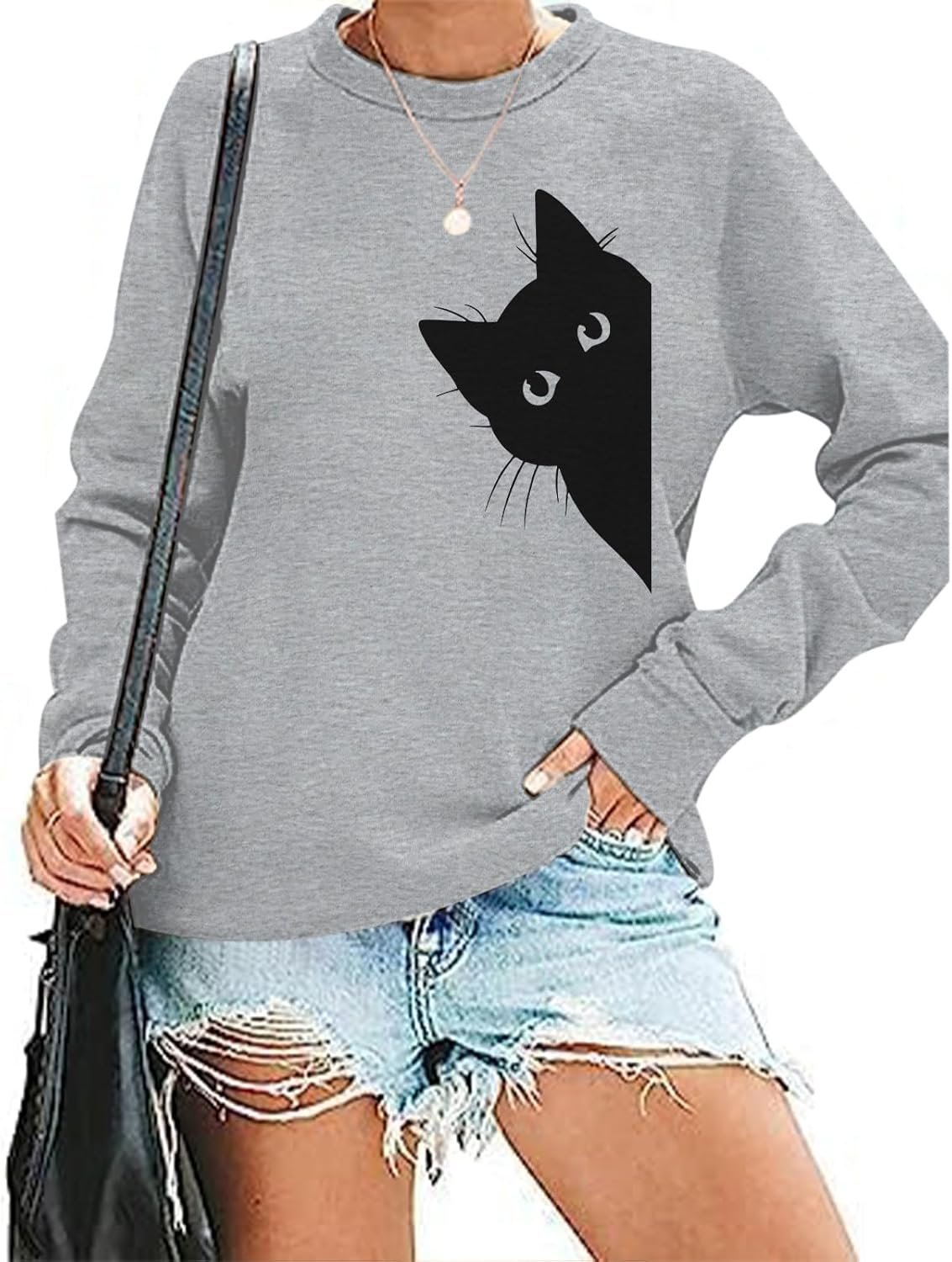 Cat sweatshirts voor vrouwen grafisch print sweatshirt grappige lange mouw shirt schattige pullover lichtgewicht hoodie tops