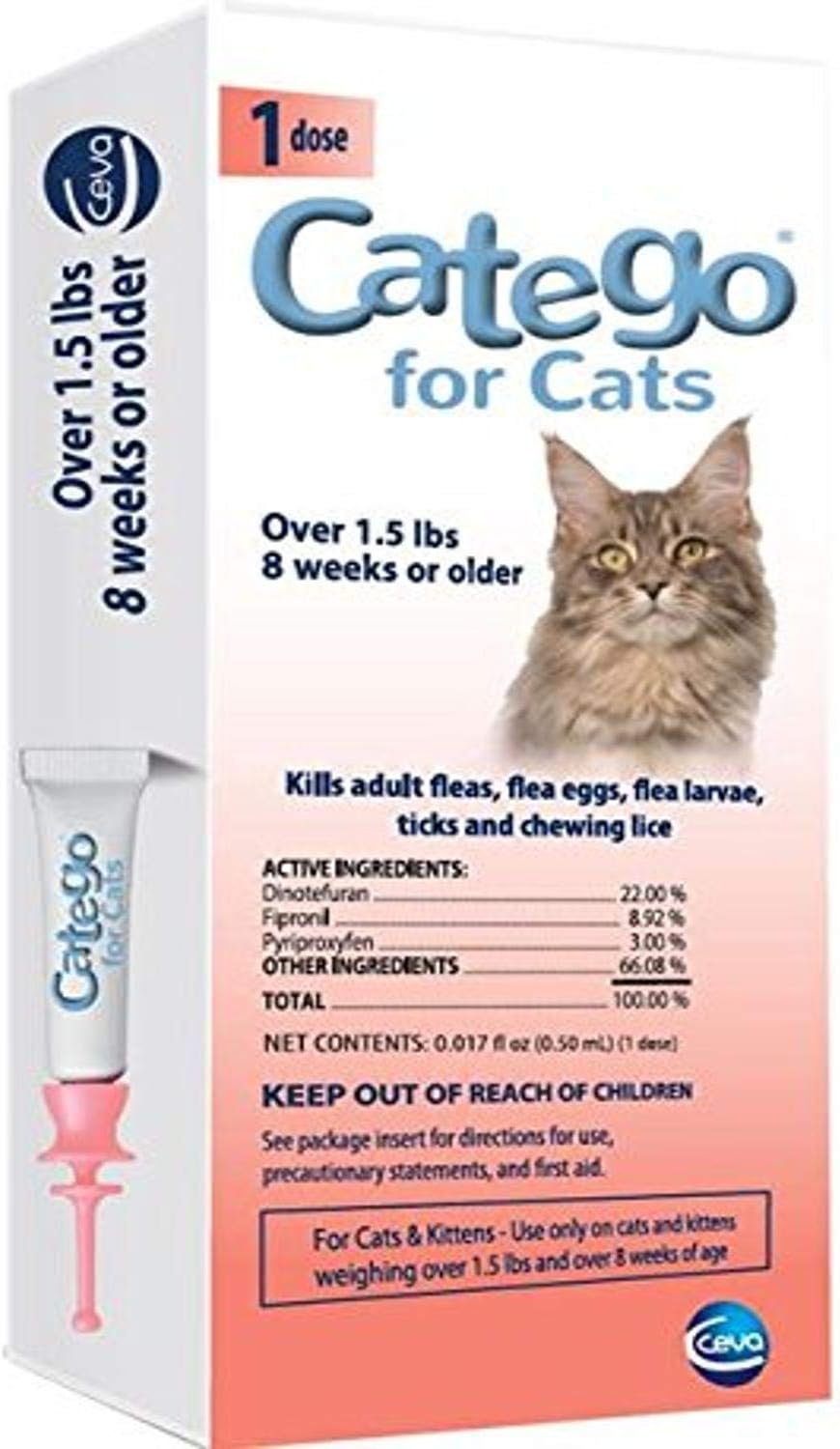 Catego voor katten beschermt uw kat gedurende 1 maand en is een geweldige oplossing voor zowel binnen- als buitenkatten. Het is eenmalige past bij het meest, zo geweldig voor huishoudens met meerdere katten. Catego voor katten is geformuleerd voor katten van meer dan 1,5 pond. en 8 weken of ouder.