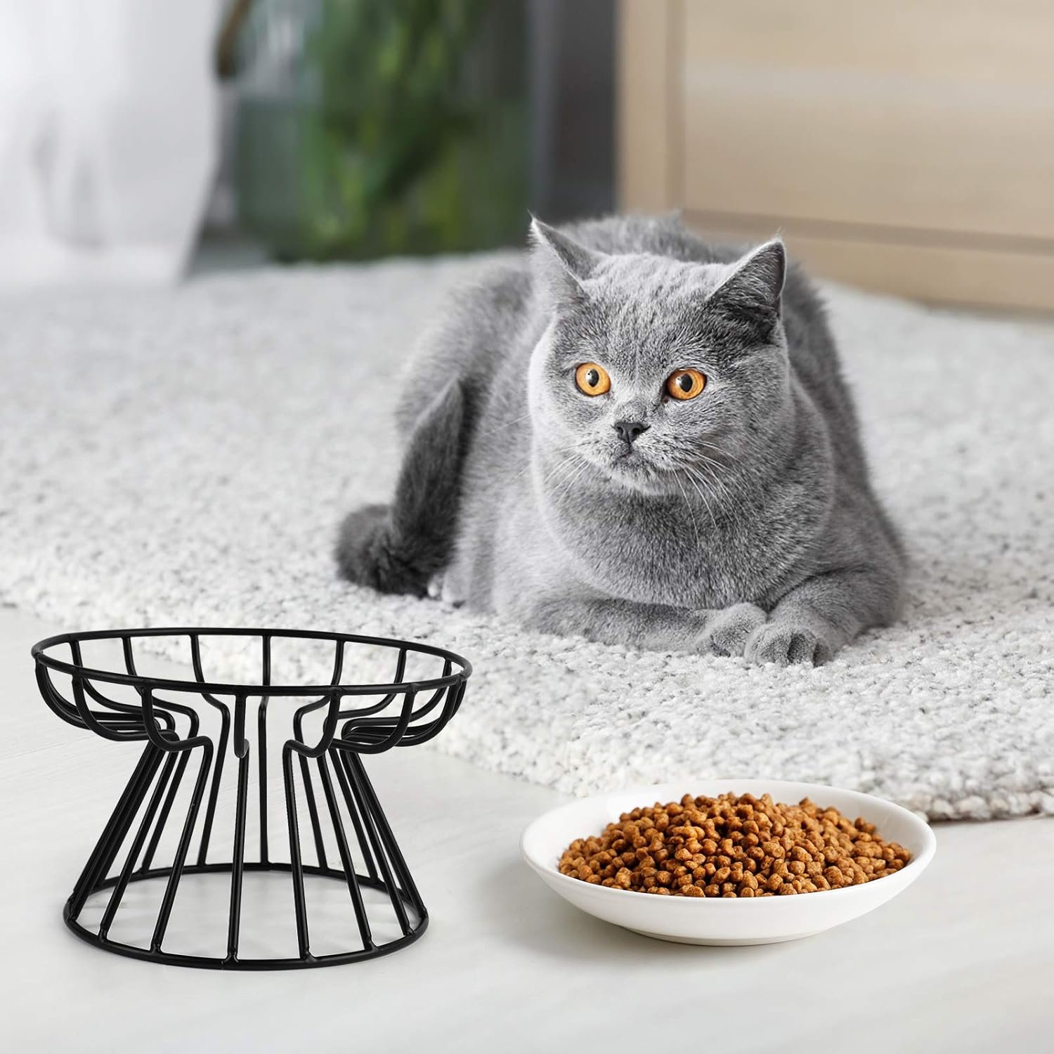 【Materialen van hoge kwaliteit】 Het schotelrek is gemaakt van hoogwaardig ijzer, dat niet gemakkelijk te roesten is. De kattenkom is gemaakt van hoogwaardig keramiek met hoge veiligheid en stabiliteit. Dus u hoeft zich geen zorgen te maken dat uw kat gewond raakt.