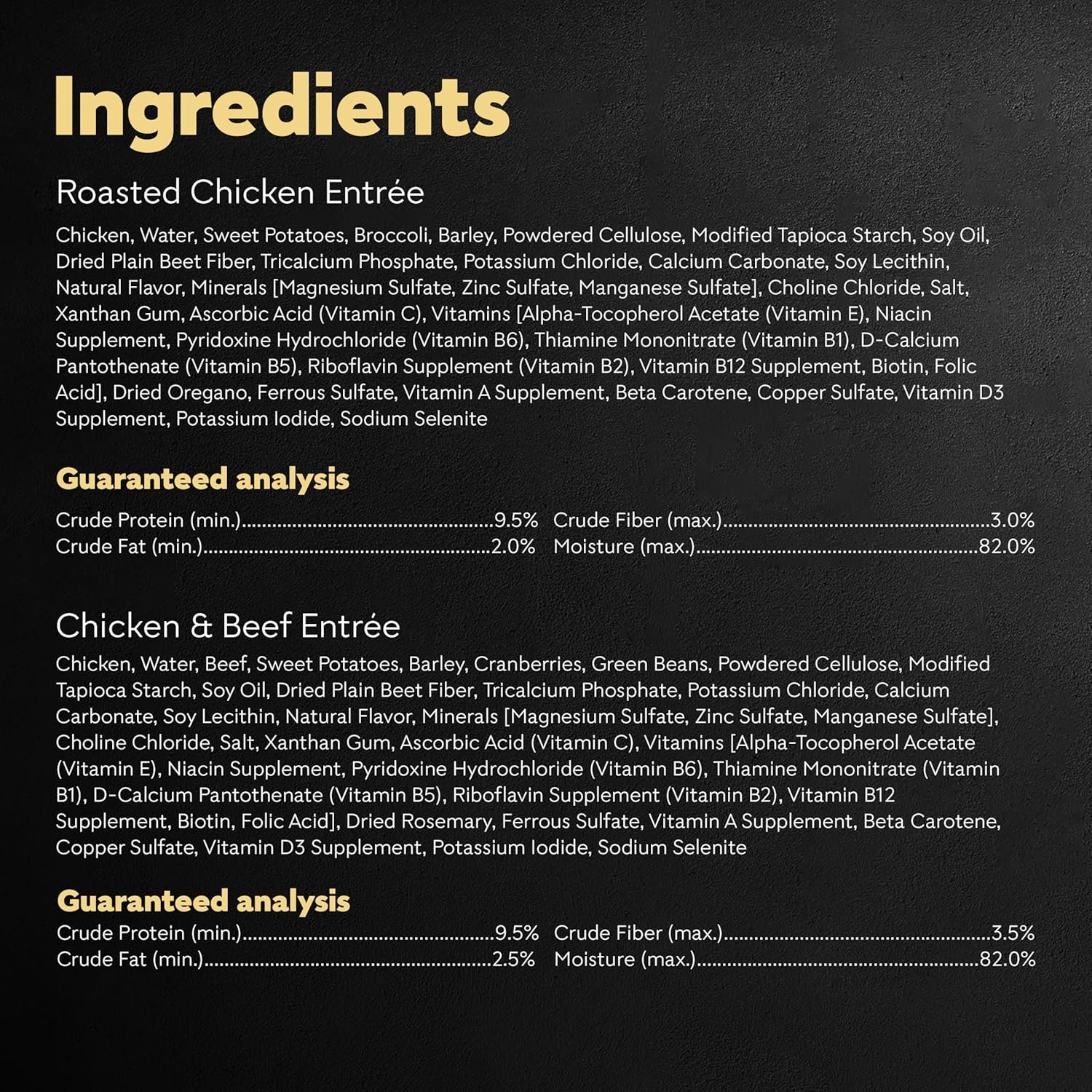 16 Belangrijkste ingrediënten: Cesar warme kommen Natte hondenvoerrecepten worden gemaakt met 16 belangrijke ingrediënten of minder met toegevoegde vitamines en mineralen