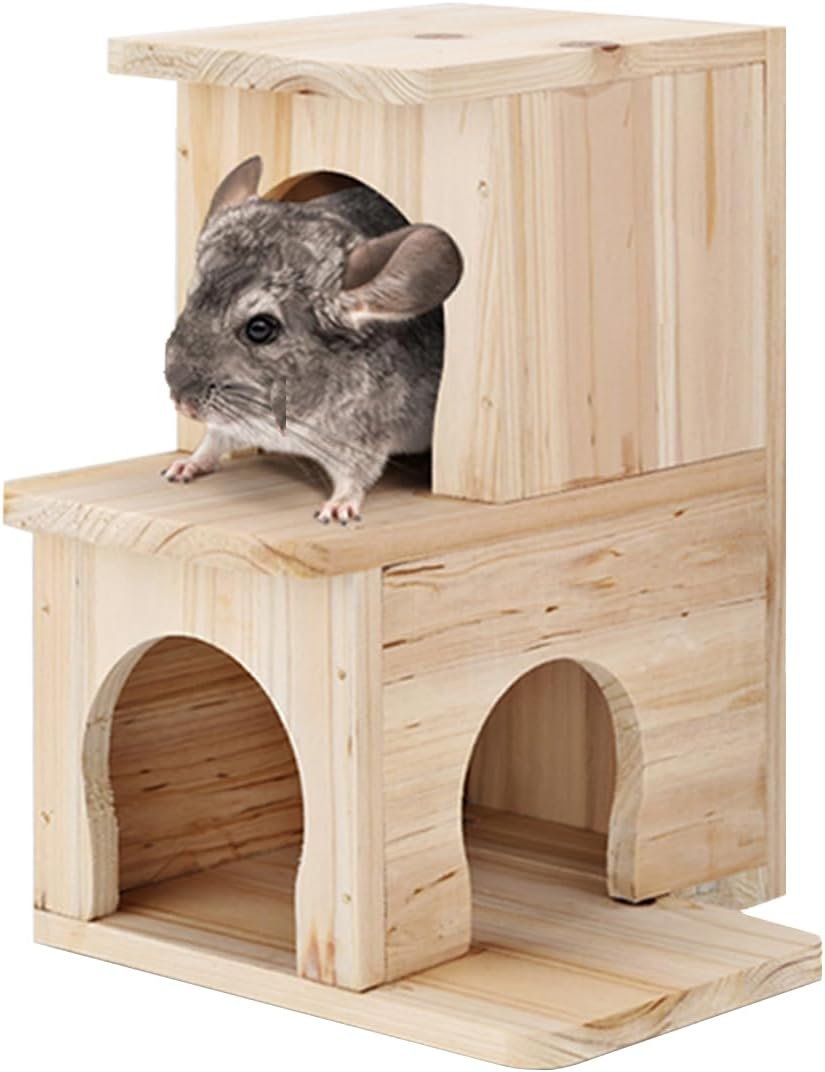 Chinchilla House Pet House Chinchilla Hideout Natuurlijk houten geen verf houten pin veilig duurzaam tanden slijpen (twee verdiepingen tellend)