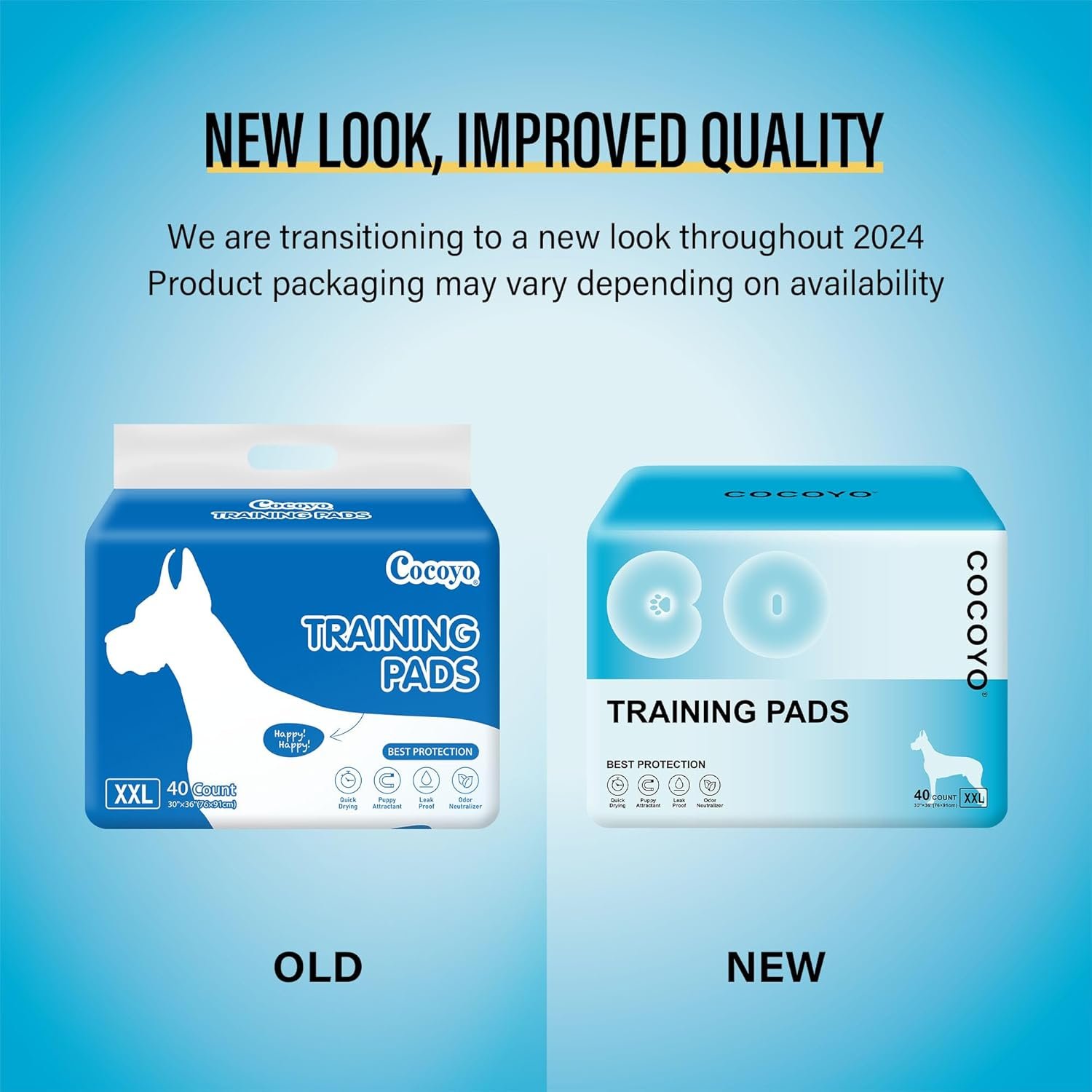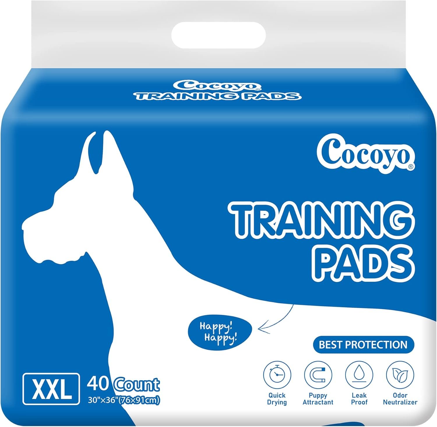 Cocoyo Beste Value Training Pads bieden onze klanten een meer betaalbare manier om puppy’s op te leiden of verouderende honden te helpen. Elk Cocoyo -trainingskussen bestaat uit 5 lagen materialen. De eerste laag is gemaakt van niet-geweven doek, waardoor honden urine doorstroomt naar de absorberende kern snel. De tweede laag is gemaakt van papierweefsel, toegevoegd met hondenaantrokkenheid. De derde laag is een mix van super-absorberende polymeer en pluispulp, die de absorberende kern vormt die de urine van de honden kan absorberen en om te zetten. De absorberende kern kan maximaal 2 kopjes vloeistof bevatten. De vierde laag is ook gemaakt van papierweefsel. De achterlaag is gemaakt van waterdichte PE-film, die voorkomt dat je vloer bevochtigd is.