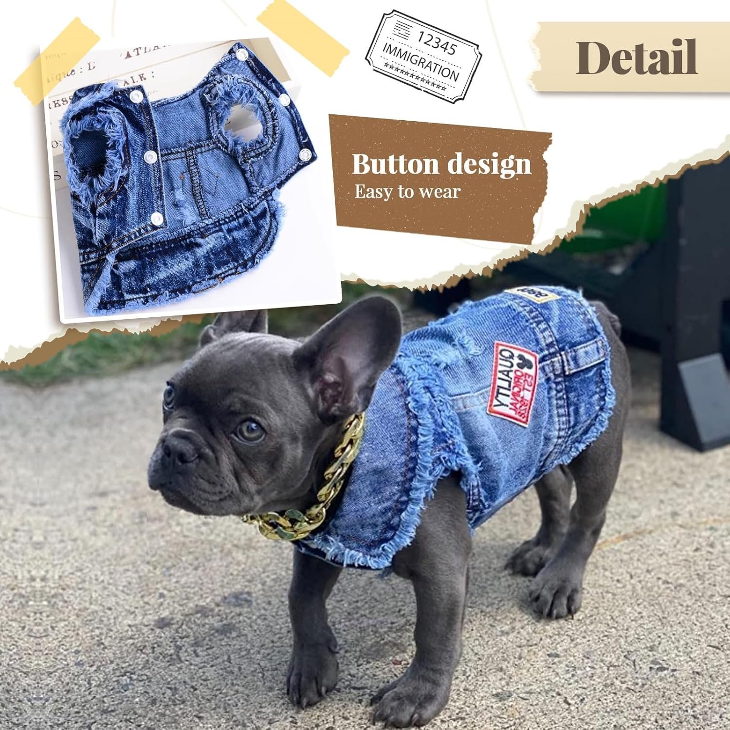 Veelzijdige look: of uw huisdier nu op weg is naar een informele wandeling of een speciaal evenement, de Dog Jean Vest is de perfecte keuze. Het is veelzijdig genoeg als aanvulling op elke outfit en gelegenheid. Ideal voor dagelijkse wandelingen of fotoshoots, deze puppyjack is een must-have voor eigenaren van huisdieren die willen dat hun huisdieren het hele jaar door stijlvol uitzien