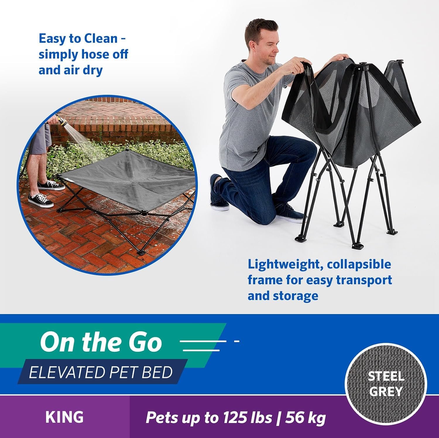 De Coolaroo on the Go verhoogde huisdierenbed is ideaal voor vakanties, stranden, parken, tailgating, kamperen en meer! Dit koelende reisbed voor reisdieren is gemakkelijk in te stellen en neer te halen, met een opvouwbaar ontwerp voor compacte opslag en reizen. Dit ruimtebesparende vouwframe wordt volledig geassembleerd in zijn eigen tas met een riem voor gemak van transport en opslag. Onze premium, gebreide stof optimaliseert de luchtstroom om uw huisdier koel te houden, terwijl het verhoogde ontwerp van de huisdierenbed ervoor zorgt dat de luchtcirculatie eronder zorgt. Het off-the-ground ontwerp in combinatie met de flexibiliteit van de stof helpt om stress op de gewrichten van uw huisdieren te verminderen, waardoor het ideaal is voor honden van elke leeftijd en grootte. Coolaroo huisdierbedden zijn geschikt voor binnenshuis en buiten, omdat het lichtgewicht, door poedercoate stalen frame roestbestendig is en door de stoere buitenelementen zal duren. Het reinigen van dit verhoogde hondenbed is een briesje – spoel gewoon af met water en laat de lucht drogen. De stof is 100% recyclebaar en is GreenGuard -gecertificeerd. Ons verhoogde huisdierenbed is vrij van schadelijke lood en ftalaatchemicaliën, waardoor uw hond veilig kan eten, kauwen en likken zonder schadelijke stoffen in te nemen. Petbedden en vervangende hoezen zijn verkrijgbaar in een breed scala aan maten en kleuren; Vervangingsdeksels voor huisdieren worden afzonderlijk verkocht. Upgrade vandaag de ervaring van uw reisdierenbed vandaag met de Coolaroo op het Go -verhoogde huisdierbed, zodat uw huisdier cool en comfortabel is, ongeacht waar het avontuur je brengt!
