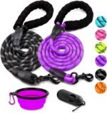 COOYOO 2 PACK DOG LEAGH 6 ft Heavy Duty – Comfortabele gevoerde handgreep – Reflecterende hondenriem voor middelgrote grote honden met opvouwbare huisdierschakel Set 3 -black+paars