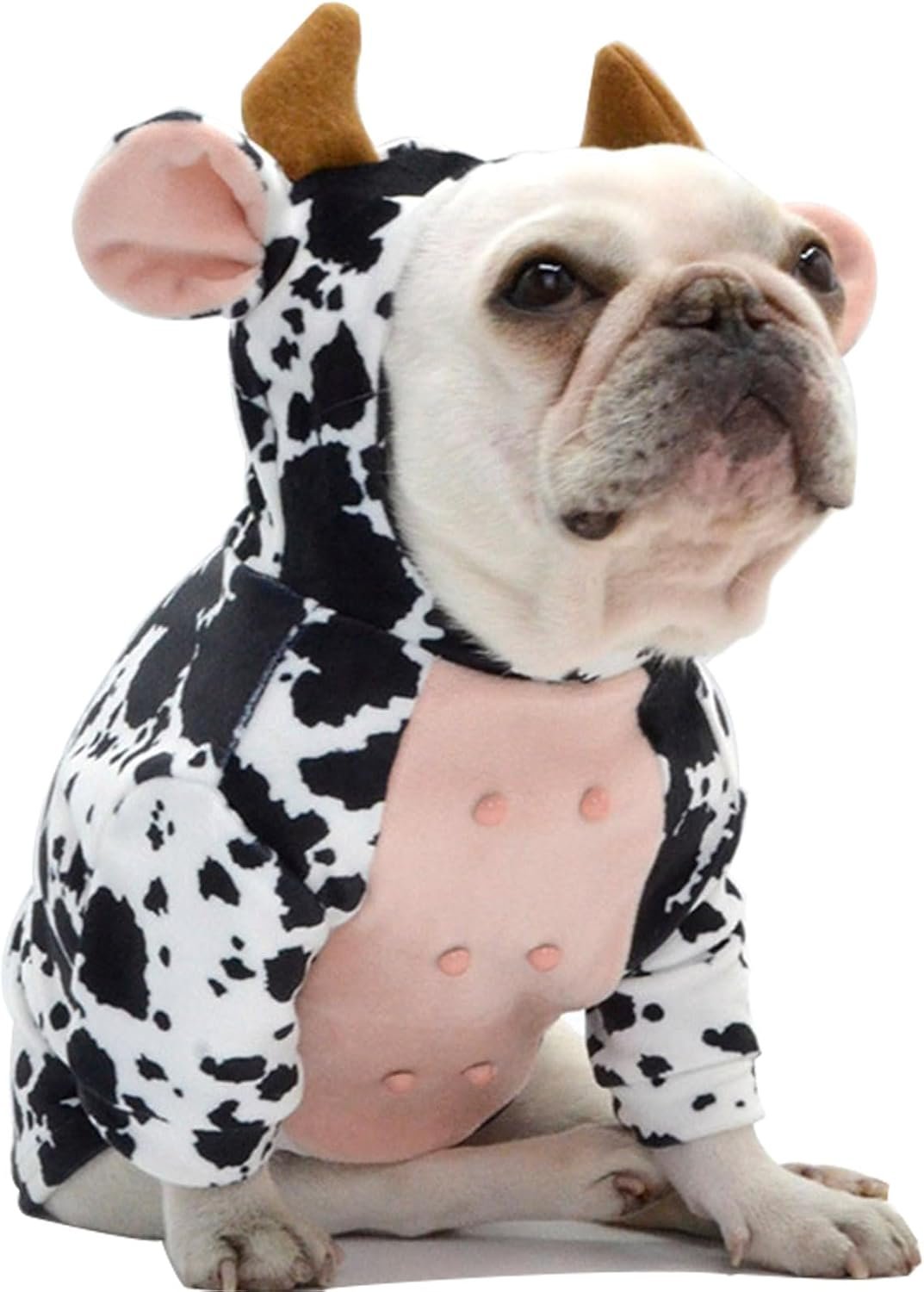 Cow Pet Dog -kostuum Franse bulldog grappige koehond feestkostuums koe kostuum voor honden kerstmelk koeien kattenkleding (koe, s)