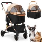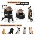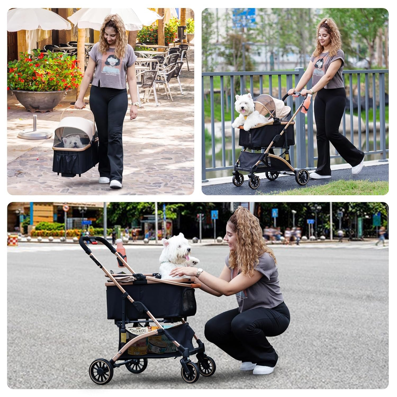 Coziwow 4-wiel premium 3-in-1 opvouwbare huisdierwagen voor kleine middelgrote honden met afneembare drager, joggen kattenreizen, zwart + goud