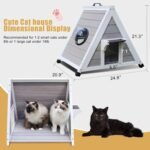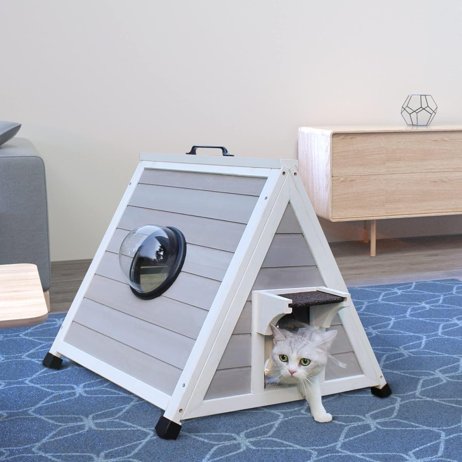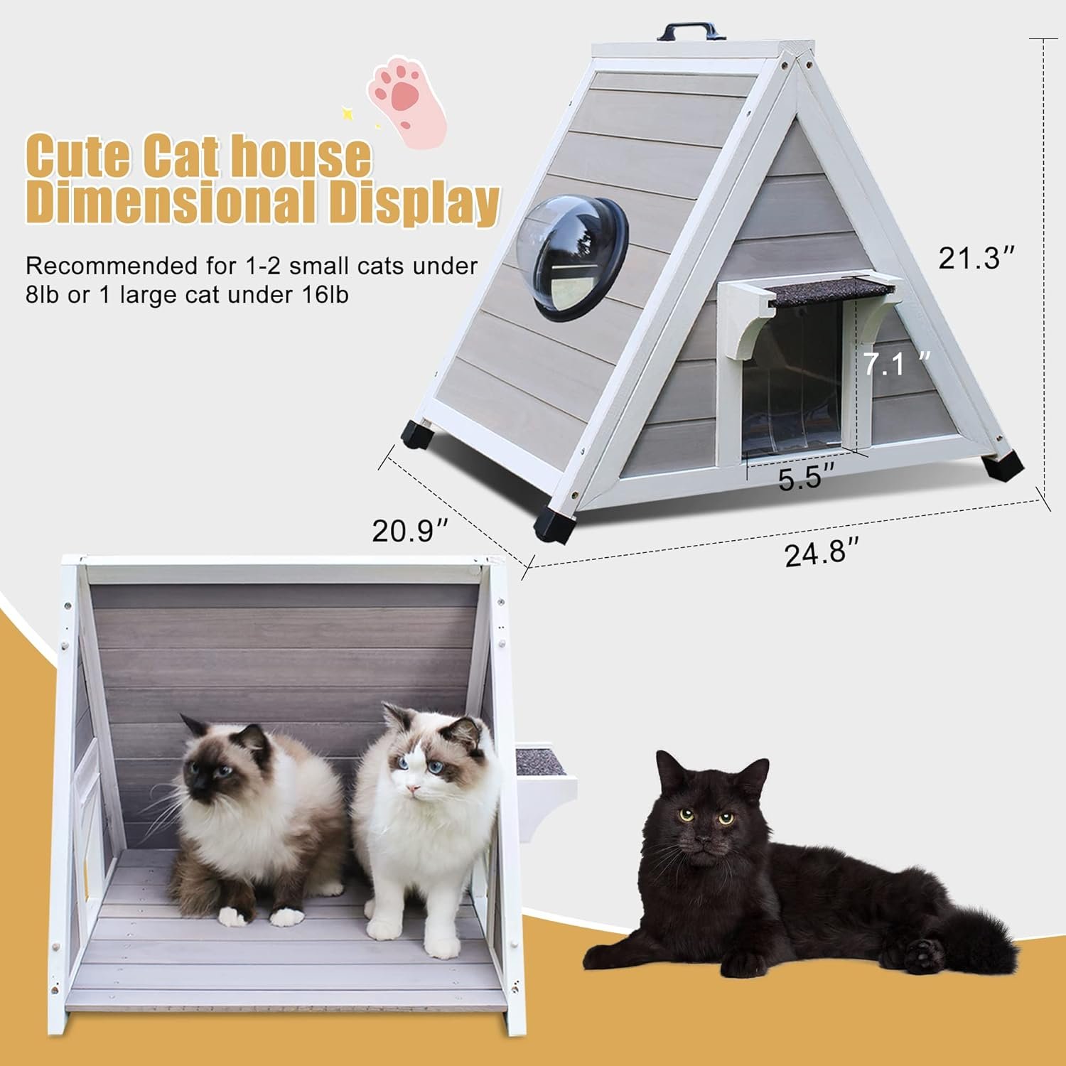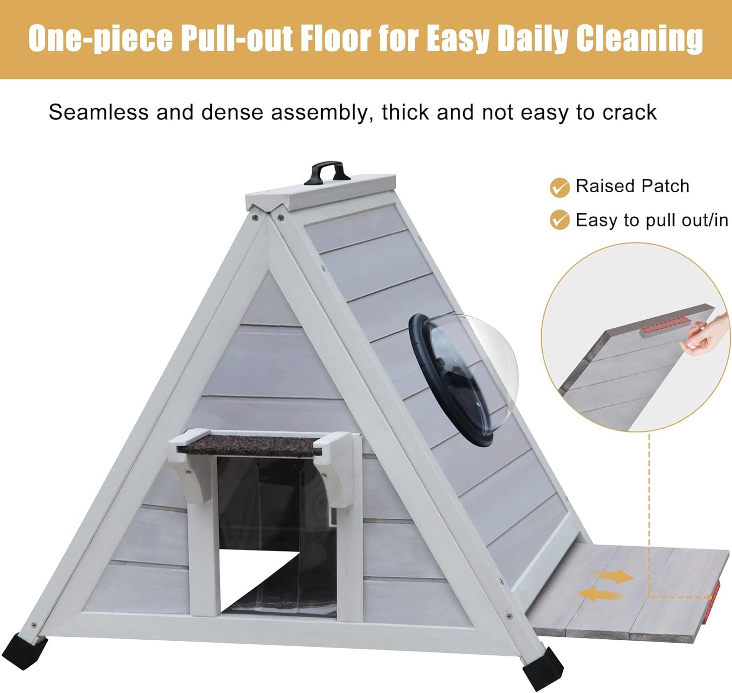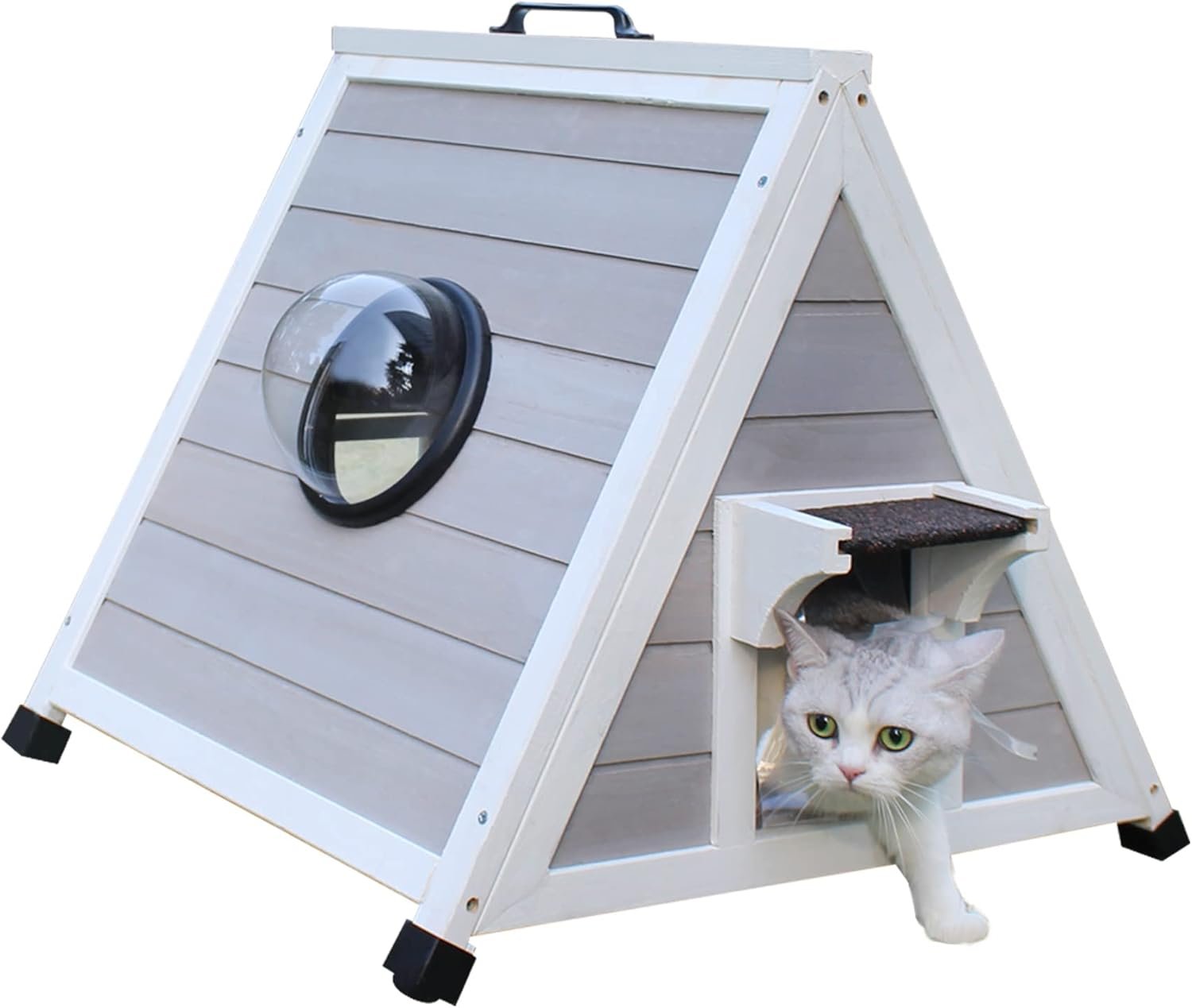 Deblue Outdoor Cat House voor wilde katten, weerbestendige houten kattenhuis voor kleine huisdieren, unieke kattenopvang met ontsnappingsdeur, heldere raamgrijs