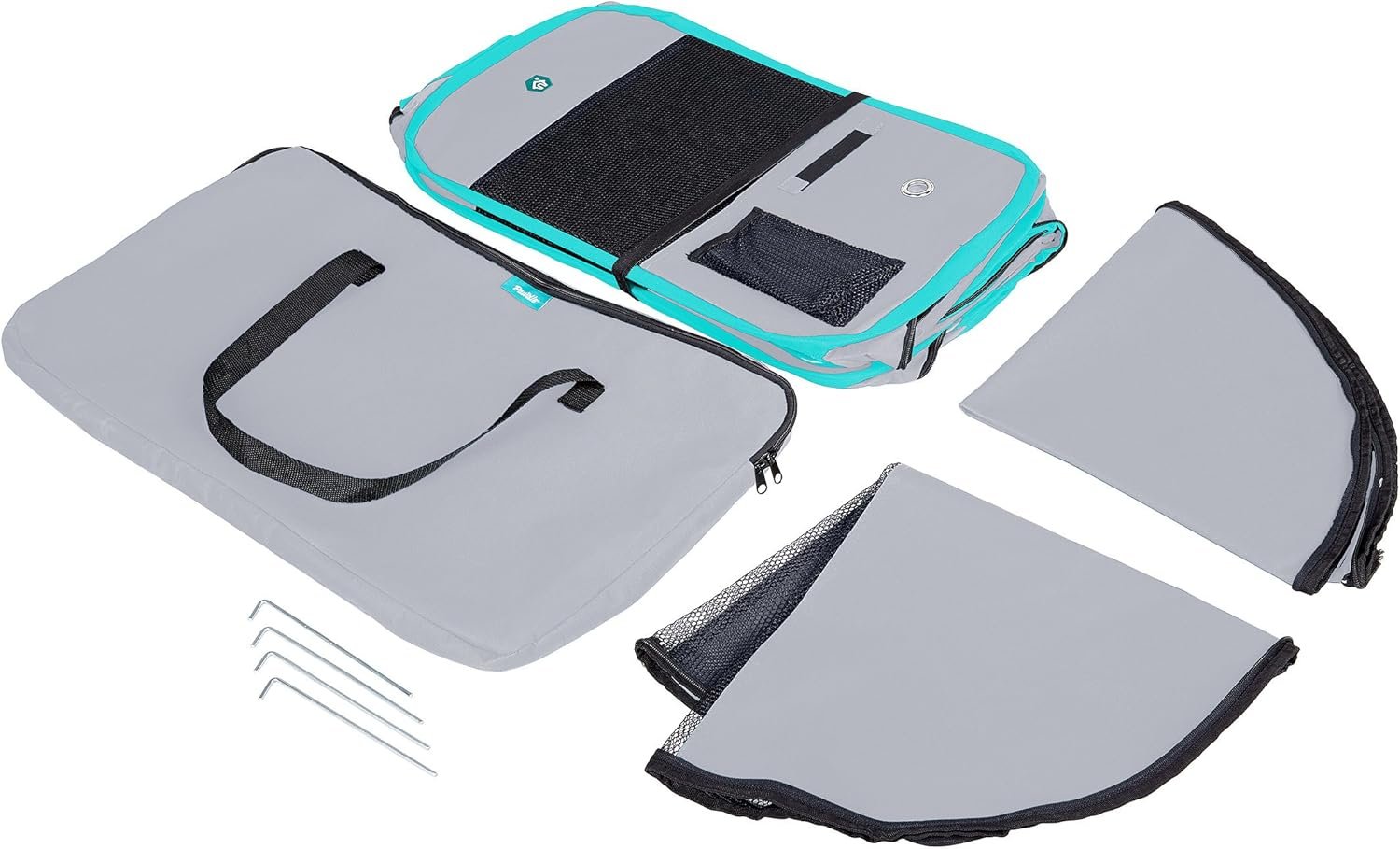 Gemaakt met luxe premium hoogwaardige materialen (600D Oxford + metalen interne frame) die lichtgewicht en toch extra sterk zijn, reizen en mobiliteit erg eenvoudig maken. Versterkte stiksels en super sterke materialen, deze playpen is gebouwd om lang mee te gaan! Mesh -gebieden zorgen voor veel ventilatie en houden uw huisdieren veilig en beveiligd zowel binnen als buiten.