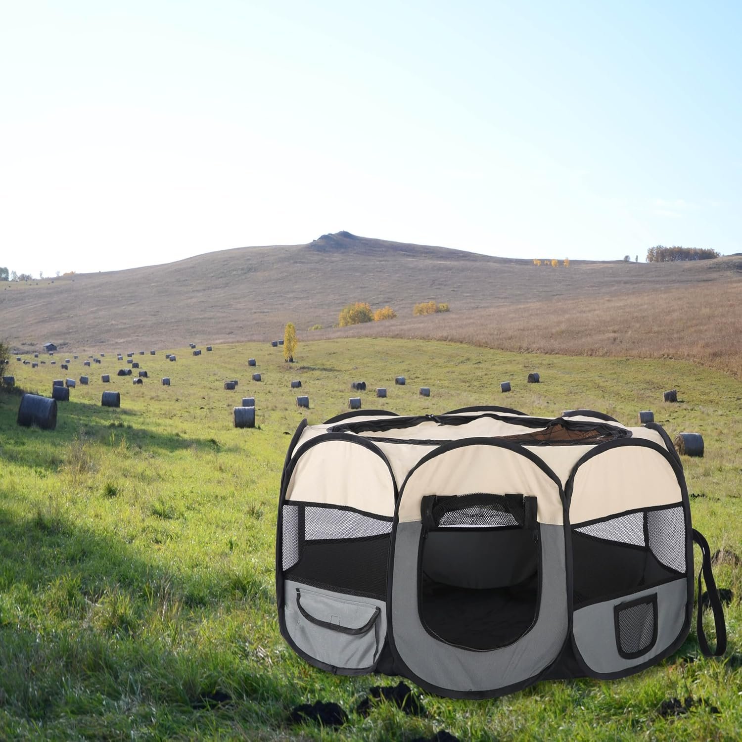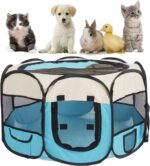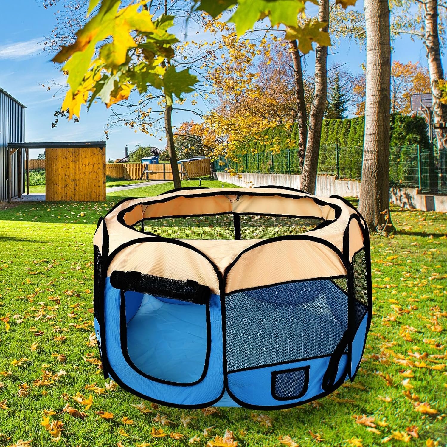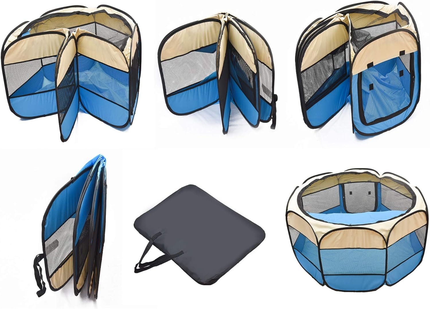 Kleine pop-up playpen Dog Cat Playpen Tent Grootte 29x29x16 inch, blauw en beige, 1 Pack Pet Pladen
