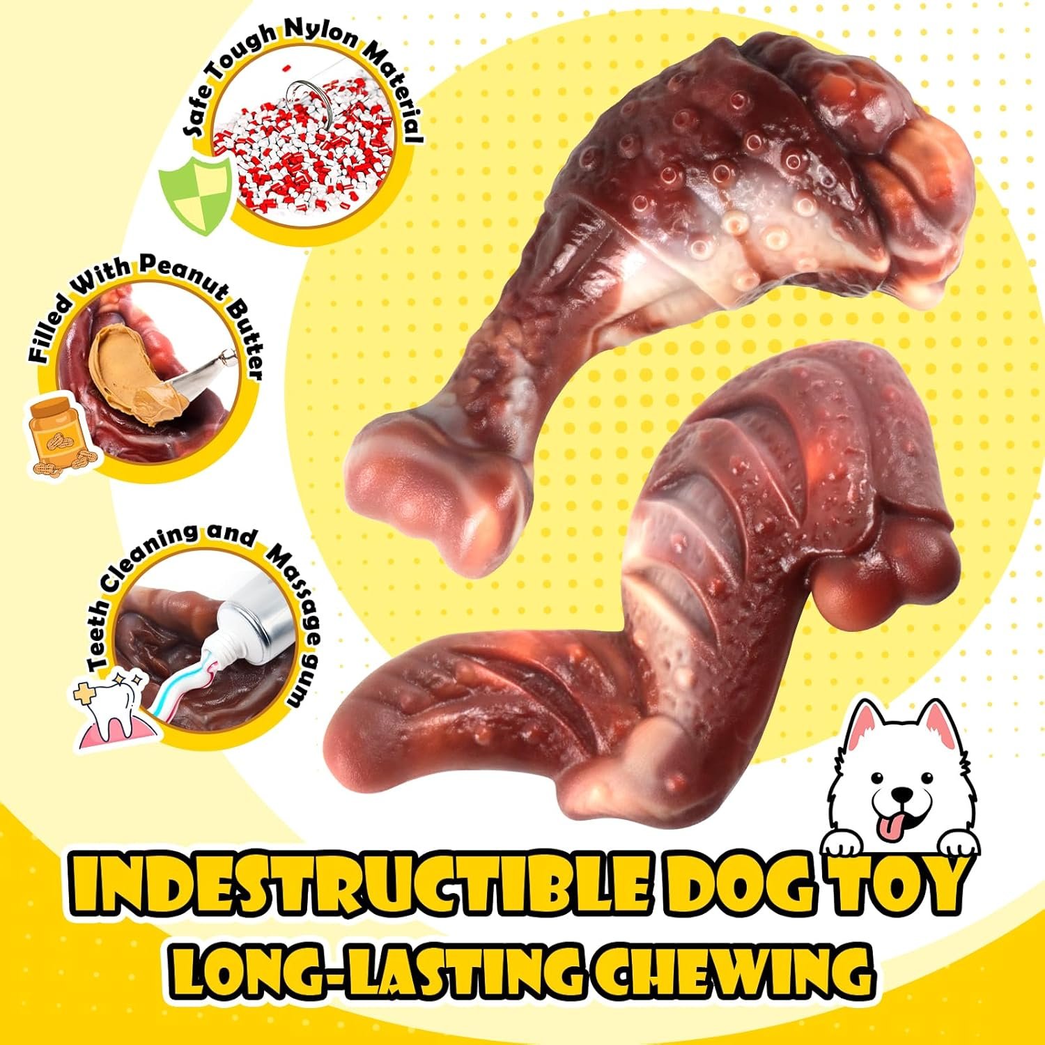 Dog Chew Toys voor agressieve kauwers: 2 Pack onverwoestbaar hondenspeelgoed, taai hondenspeelgoed voor grote honden, hondenbotten nylon speelgoed voor klein, gemiddeld, groot ras om ze bezig te houden