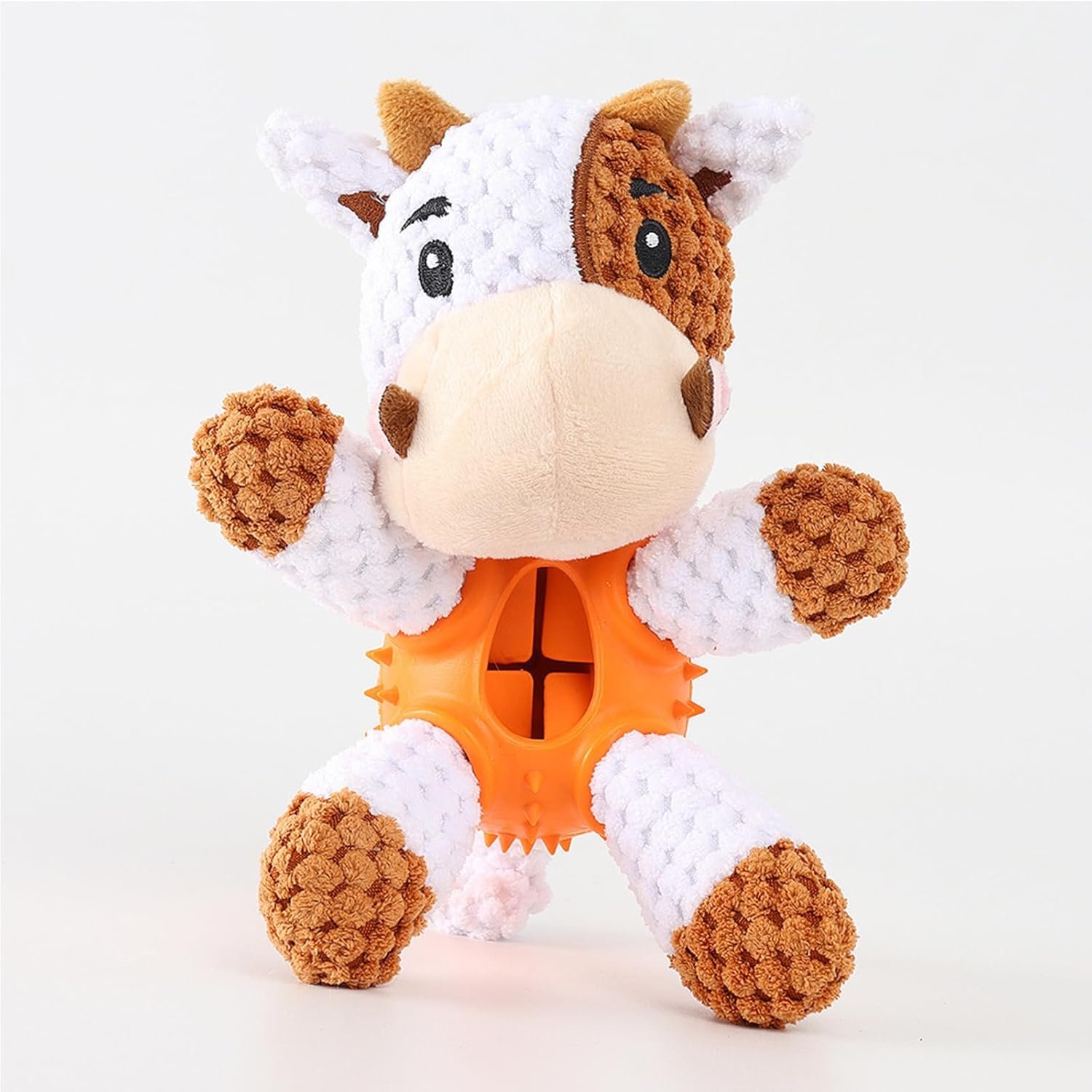 Dog piepende speelgoed, hondenkauwspeelgoed voor agressieve kauwers, duurzaam hondenpuzzelspeelgoed met traktatie doseerbal voor medium klein ras, natuurlijk rubber interactief hondenspeelgoed voor het verminderen van verveling (sinaasappelkoeien