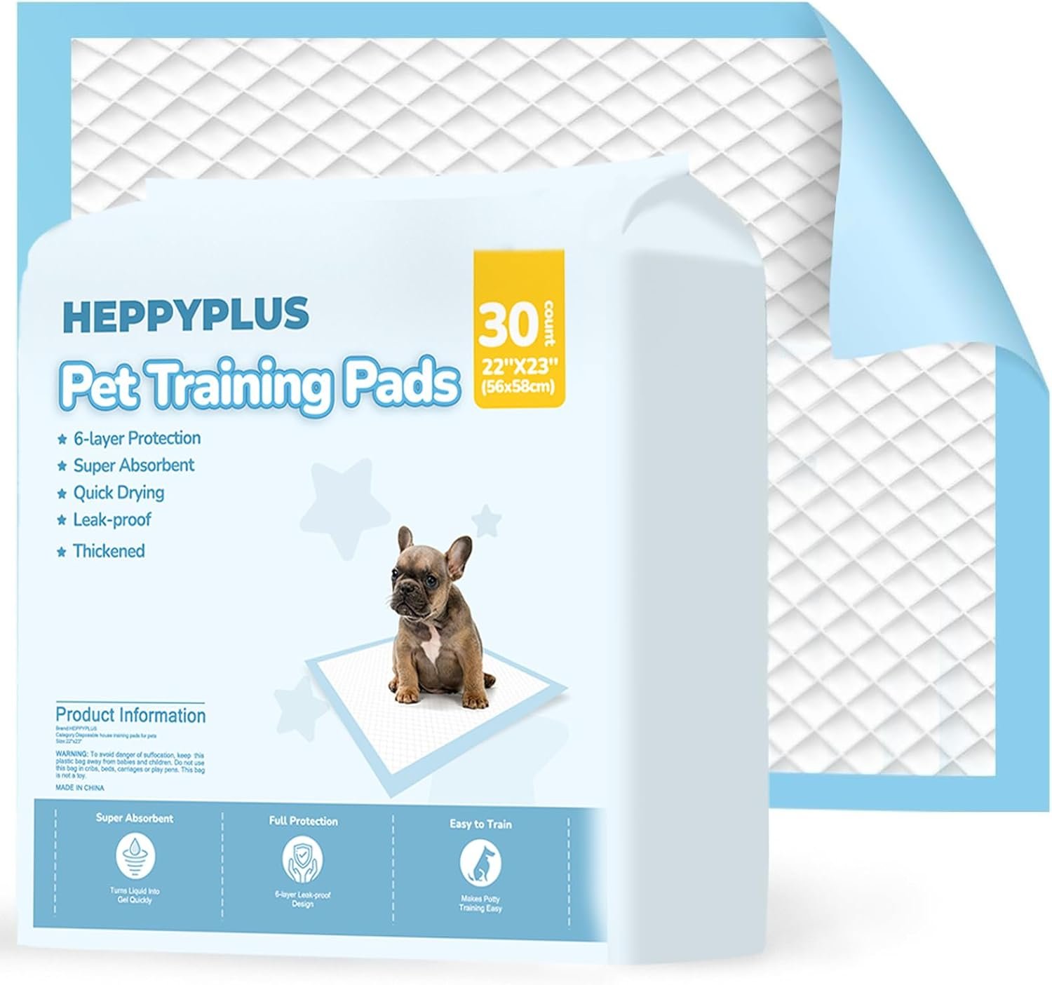 Dog plas pads 22 “x23”, 30 tellen wegwerppuppypads plas pads voor honden, huisdier training pads super absorberende lekbestendige plasblokken (30 telling)
