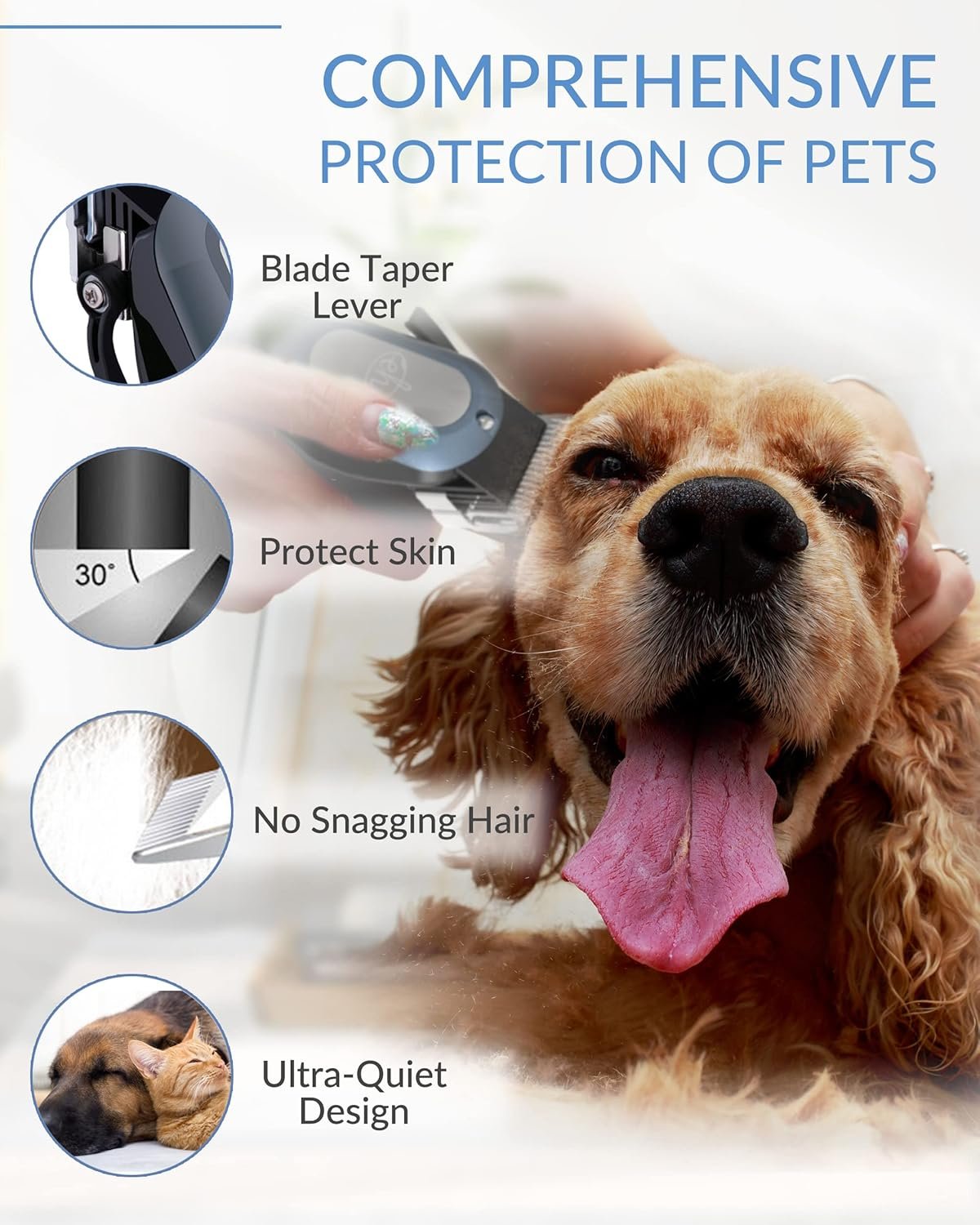 Verstelbare kniplengte: onze hondenklippers voor verzorging worden geleverd met twee aanpassingsmodi en zes bewakingskammen waarmee u het haar van uw huisdier gemakkelijk op verschillende lengtes kunt knippen. Met tien metalen limietwachten van premium kwaliteit kunt u snelle en gemakkelijke lengteveranderingen aanbrengen van 1,6 tot 22 mm.