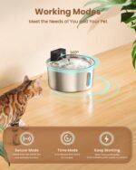 Drievoudige watermodi: roestvrijstalen kattenwaterfontein heeft drie werkmodi, meer keuzes om aan de behoeften van uw huisdier te voldoen. â‘ Senseermodus: activeert de waterstroom gedurende 6 seconden wanneer een PET binnen 59 inch is. â‘¡ Timingmodus: stroomt elke 15 minuten gedurende 15 minuten water. â‘¢ Continue modus: vereist inliggende inliggende stroom voor een constante stroom. (Senseermodus is het meest aanbevolen)