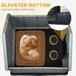 Weerbestendig ontwerp: ontworpen met een verzegelde beschermende structuur, een 3,1-inch hoge basis en een schuine dak, dit outdoor hondenhuis bestrijdt effectief vuil, regen, sneeuw en andere weerelementen. Twee grondnagels zorgen voor stabiliteit, zelfs tijdens sterke wind