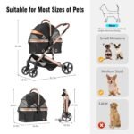 【4-wiel schokdemperveer】 uitgerust met dual-spring schokdemper suspensie op zowel voor- als achterwielen, vermindert het trillingen voor maximale stabiliteit. De 7 “voorwielen roteren 360 ° en de 10” achterwielen worden geleverd met rembeveiliging, waardoor veilige parkeergelegenheid op hellingen en optimale veiligheid voor uw huisdier wordt gewaarborgd.
