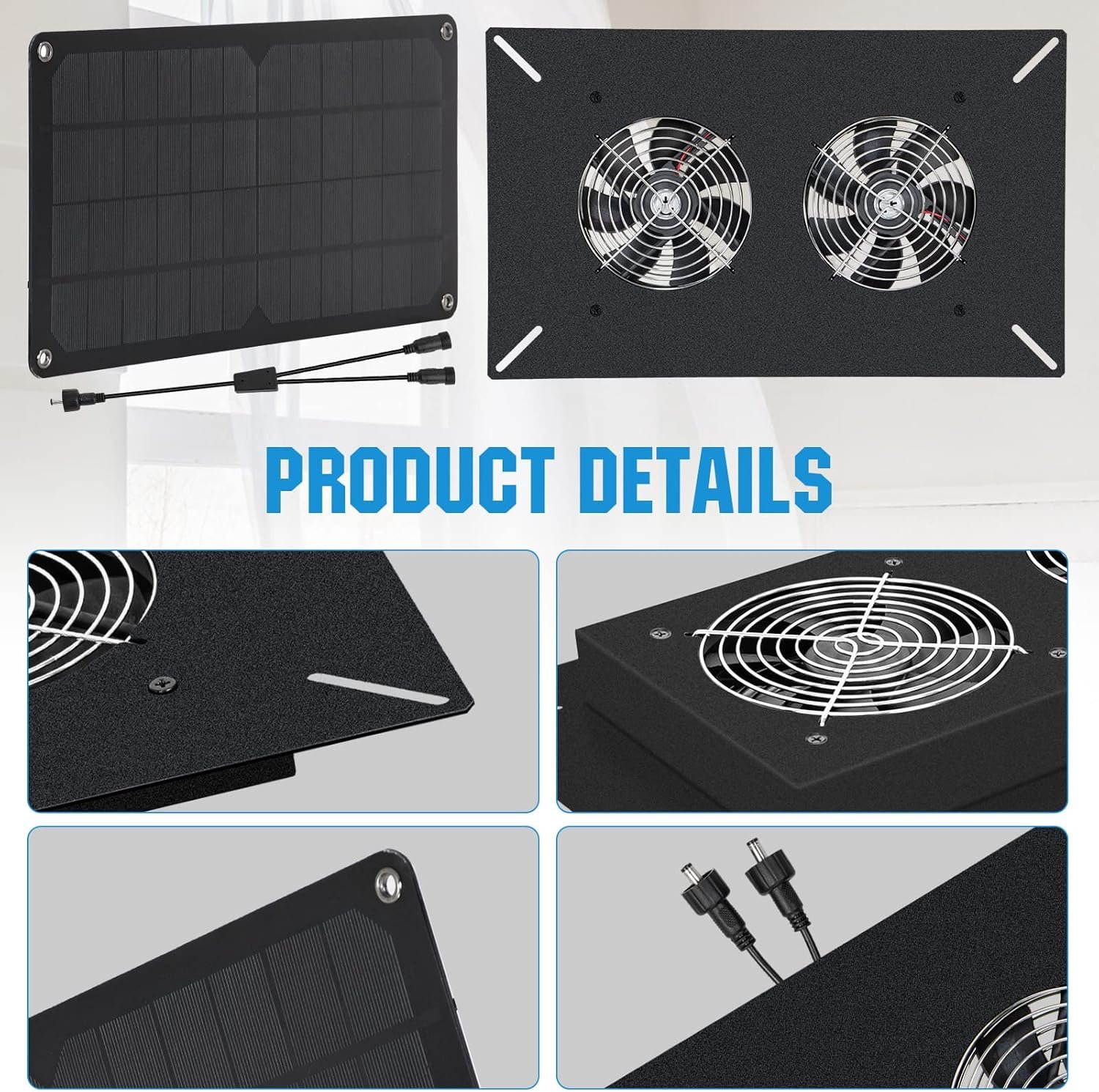 【Vers en koel】】】】】】- Dit zonnepaneel dubbele ventilatorkit kan hete lucht verdrijven en de lucht binnen laten, waardoor de binnentemperatuur en vochtigheid effectief worden verlaagd, waardoor de lucht fris blijft. Geschikt voor kleine ruimteventilatie, ideale zonne -ventilator voor kleine kas, kippenhok, schuur, huisdierhuis, uitlaat van het raam.