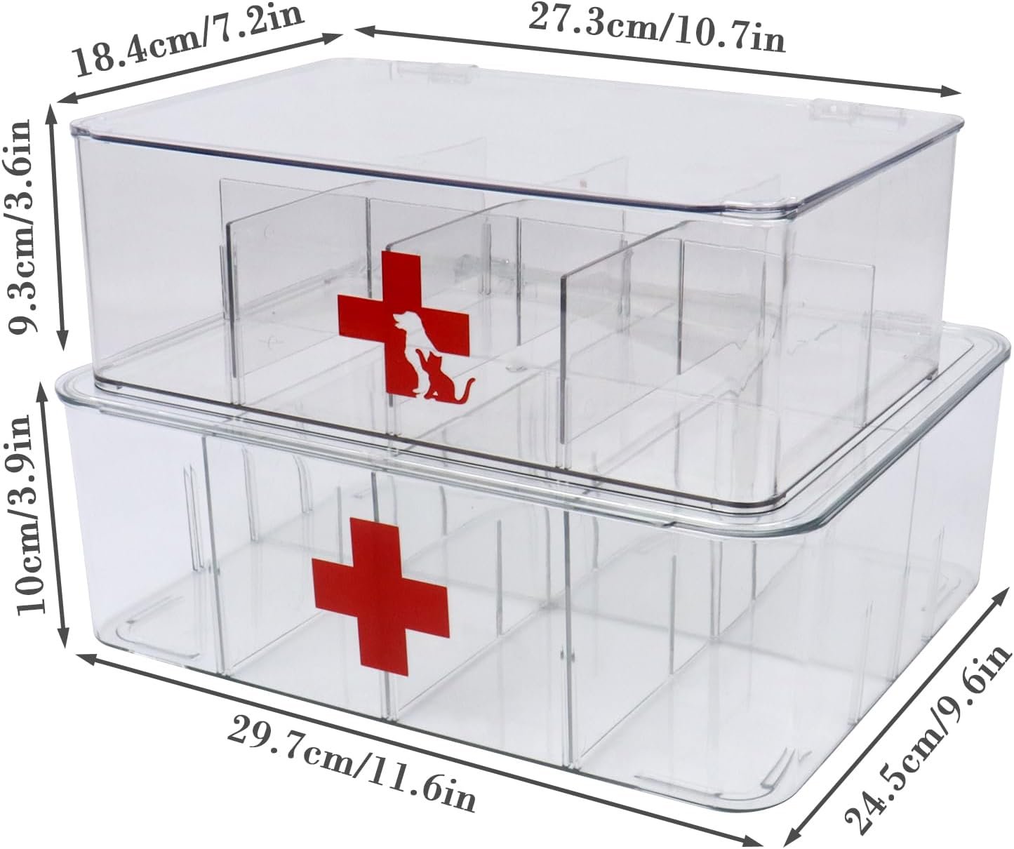 Deze 2 -pack acryl -opbergkit voor EHBO -doos voor thuis en huisdier, geschikt voor badkamer, keuken, kast, kast