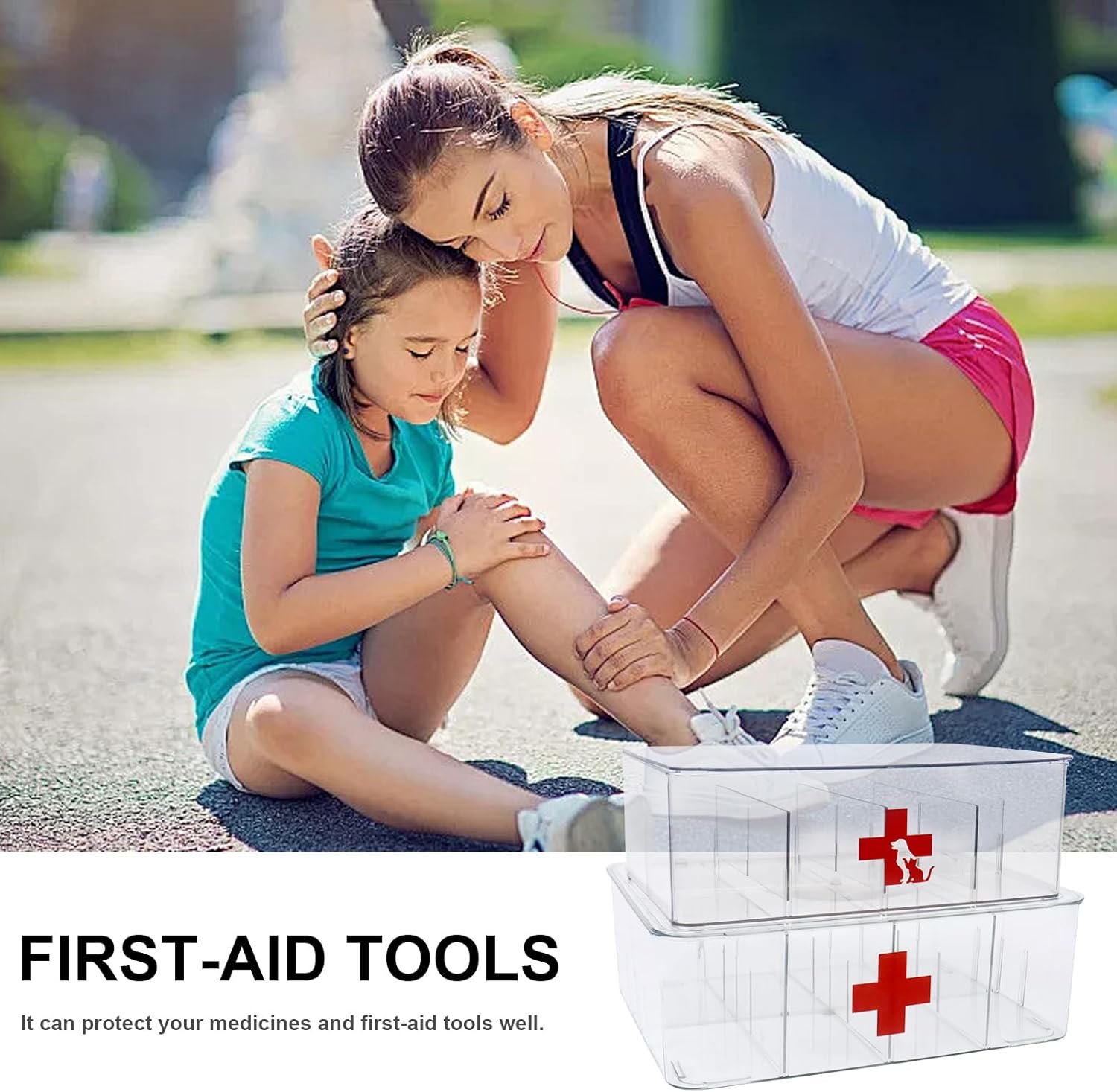 Clear Medicine Storage Box voor kleine EHBO-kit winkelt goed op in planken of in een kast, beschikt over goed uitgelegd secties voor het sorteren van uw essentie.