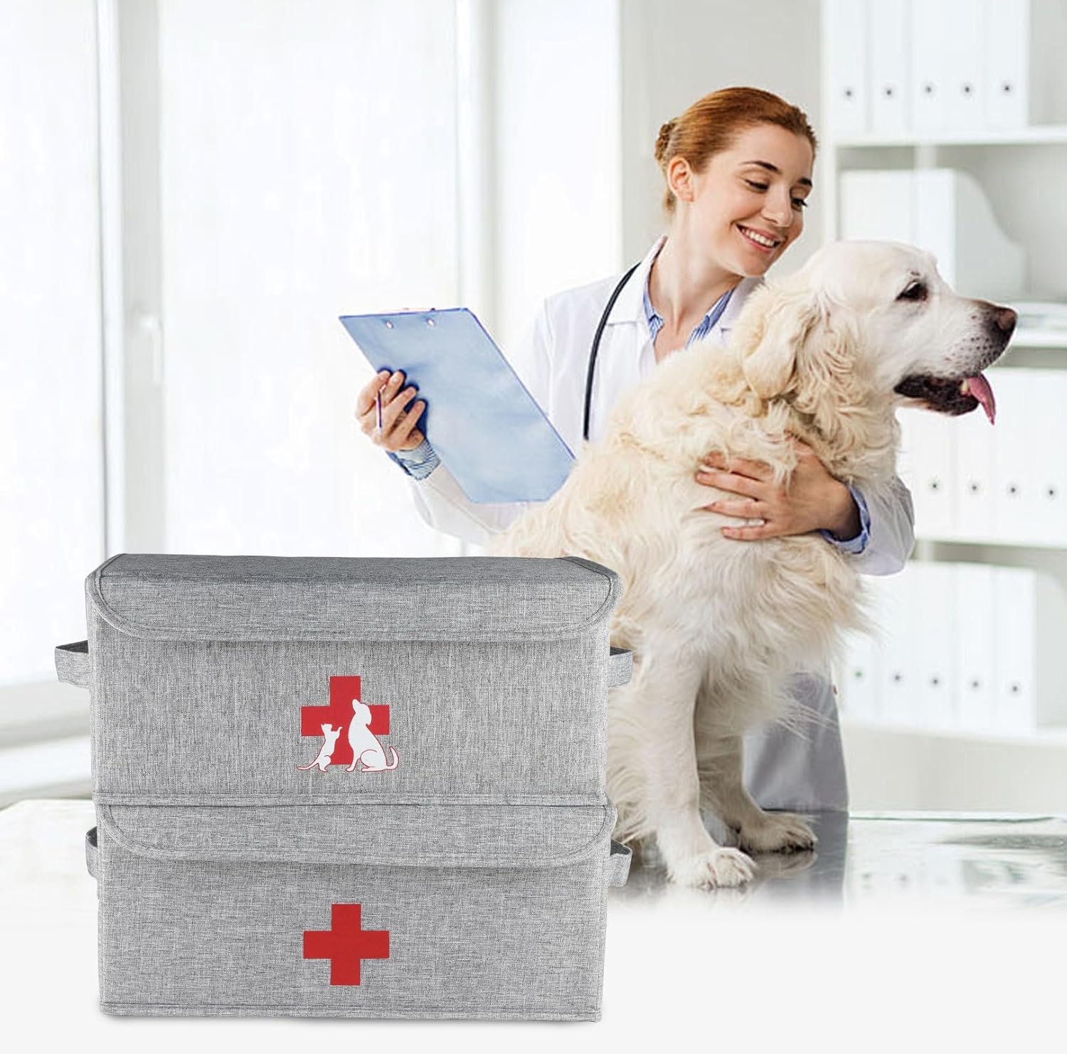 XBOPETDA SET VAN 2 Fabric Lege EHBO -opbergdoos voor Home and Dogs Cats
