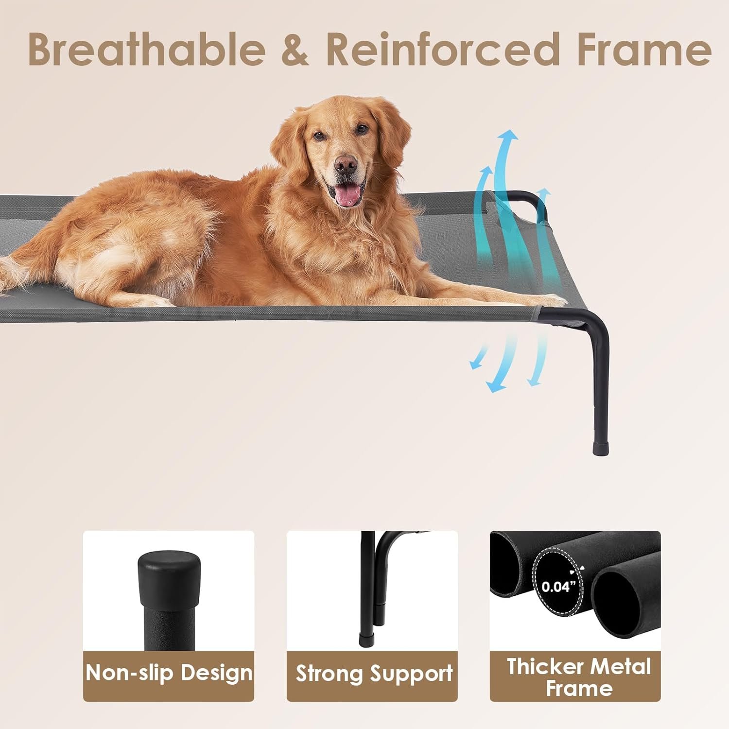 Indoor & Outdoor: verhoogde hondenwieg bestand tegen regen/zon met niet-slip voeten. Ademend ontwerp houdt huisdieren binnenshuis, op patio’s, door zwembaden of kamperen. Stevig frame behandelt het hele jaar door indoor-outdoor-avonturen.
