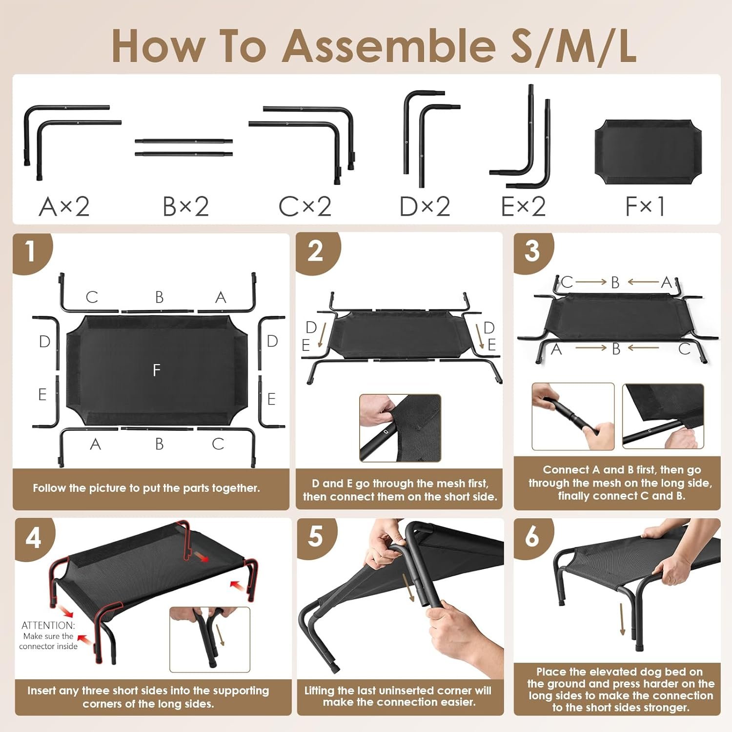 Duurzaam: het verhoogde hondenbed heeft versterkte vierzijdige randen en zware Teslin-mesh, die gewichten ondersteunt van 40 tot 150 pond. Versterkte gewrichten voorkomen buigen, waardoor het ideaal is voor kleine pups voor grote rassen.