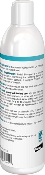 Elanco Relief Shampoo, tijdelijke verlichting van jeuk en schilfering, moisturizer voor een droge huid en jas, voor honden, katten en paarden, 12 oz