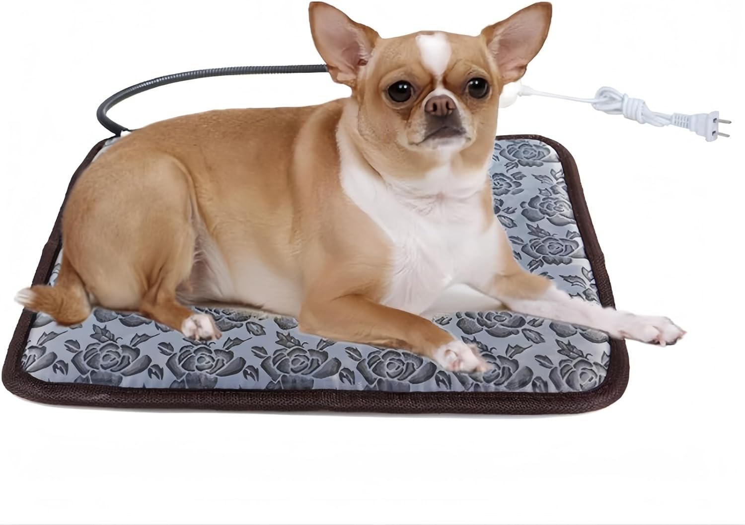 Elektrisch verwarmingskussen voor honden en katten met anti-bijbehorende stalen koord waterdicht verstelbare hond warm bedmat verwarmde kussen voor huisdieren deds dekens en kennel 17.7inx17.7in (bloemkleur)